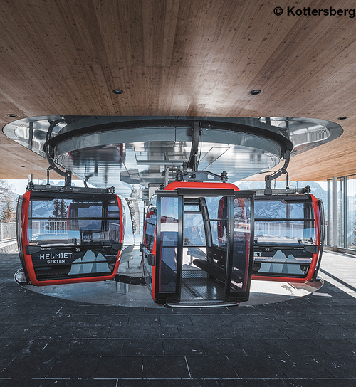 Nach 40 Jahren Betriebszeit inmitten der Südtiroler Dolomiten zwischen Sexten und dem Skiberg Helm hat die Pendelbahn dort ausgedient. Im Herbst 2020 machte sie Platz für die neue Kabinenbahn „Helmjet“. Der Helm ist ein beliebtes Ausflugsziel für Familien und Wanderer und bietet im Winter Pistenvergnügen auf 2.050 m Höhe. Mit dem „Helmjet“ gelangen die Fahrgäste in nur knapp sechs Minuten zum Helm. Die neue Bahn bietet deutlich mehr Komfort und die Hektik und langen Wartezeiten in den Stationen gehören nun dank deutlich höherer Förderleistung der Vergangenheit an. Ein wichtiger Teil der Investitionen der vergangenen Jahre waren und sind die Seilbahnen. So ist dies nun die sechste Anlage innerhalb von sechs Jahren, die LEITNER in diesem Skigebiet realisieren konnte. Besonders elegante 58 Luxus Kabinen Symphony 10, ausgestattet mit Sitzbänken samt Lodenpolsterung und Skiträgern im Innenbereich, sorgen für ein angenehmes Fahrerlebnis. Als Antrieb kommt bei der 10erKabinenbahn ein besonders leistungsstarker LEITNER DirectDrive zum Einsatz.