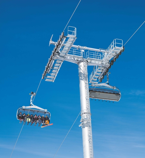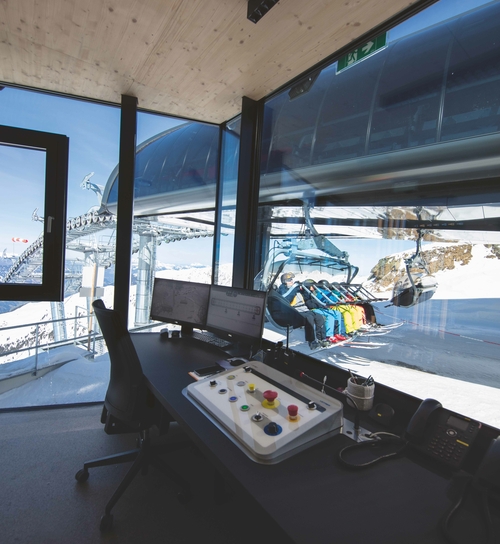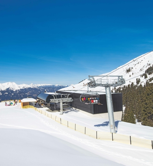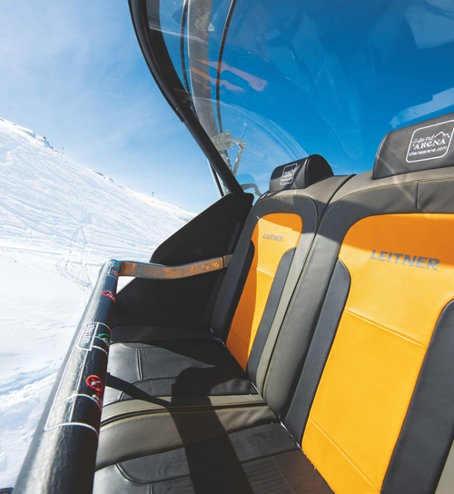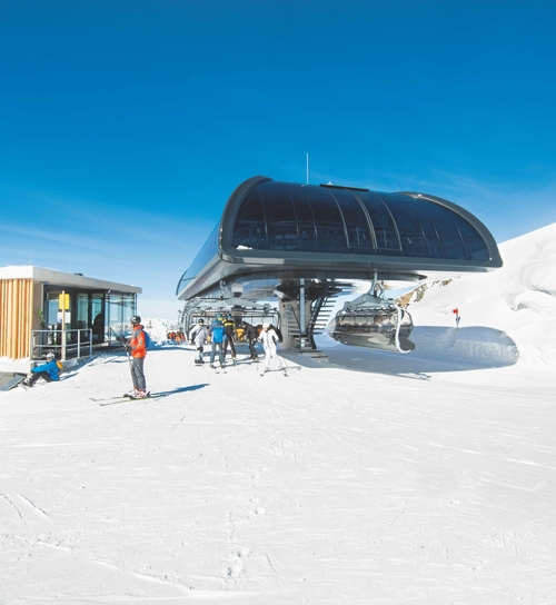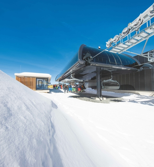 The new CD8C Kapauns in the tourist region of Zillertal has replaced an old system built in 1993, and its extended route takes it right up to the top of the col. This has created a new link between Zell and Gerlos. The new routing has almost doubled the associated pistes to over 2.5 km, bringing some to above 2500 m in the process, and making them fully north-facing, which means excellent snow conditions right into the spring. This part of the Zillertal Arena, with its 147 km of slopes, has been made significantly more attractive by the new ropeway. With a journey time of around seven minutes, the new 8-seater chairlift carries up to 3000 people per hour along a route of nearly two kilometers. It incorporates not only the latest ropeway technology from LEITNER, but also, in collaboration with world-renowned architects Snøhetta, a strong architectural dimension. The new stations feature designs that are minimalist yet spectacular.
