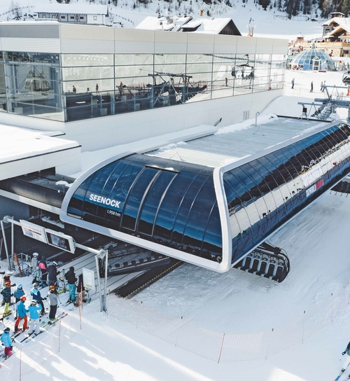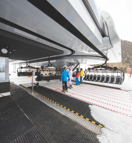 At the South Tyrolean ski resort of Speikboden, the new CD8C Seenock chairlift replaces a 4-seater chairlift which has already been operating for 30 years. The new chairlift uses the existing route and features LEITNER DirectDrive, premium faux leather seats, weather bubbles, and seat heating. The modern 8-seater chairlift’s station has been designed by Italy’s renowned Pininfarina studio. The new ropeway increases capacity to 3400 passengers per hour, brings the journey time down to just four minutes, and gives easy access to the various slopes of this family-friendly ski resort, the highlight of which is an almost five-mile-long valley run involving 1450 meters of descent – one of the biggest drops in South Tyrolean skiing.
