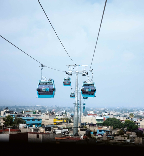 Equipped with more than 300 ten-passenger cabins, LEITNER’s “Cablebús 2” ropeway system carries up to 100,000 people per day over a distance of 10.6 kilometers via seven stations. The longest ropeway line in Latin America (Guinness World Record) opened on August 8, 2021. This ropeway is in the southeast of the Mexico City metropolitan area, in Iztalapala, whose 1.8 million residents can now enjoy significantly improved travel to workplaces, schools and recreational opportunities. More than 70,000 people are employed in stores, companies etc. along the route of the ropeway and can now reach their workplaces more quickly. There are also plans for 4,200 new jobs in Iztapalapa, which will be easier to get to thanks to this new mode of transport. And the travel time for this route has been greatly reduced from 75 to just 36 minutes. Residents of the district now enjoy not only a faster, safer connection, but also a much more sustainable means of transport.