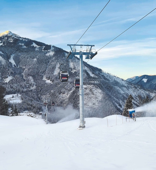 Situated at the popular World Cup venue in the region of Pyhrn-Priel, Austria’s highest ropeway project to date, the new GD10 Hössbahn, features Diamond EVO cabins with automatic sliding doors, providing more legroom as well as ski quivers on the inside. The bottom station, which features high capacity loading, has a longer layout, making boarding easier, and is integrated into a multifunctional building that includes checkouts, management offices, public bathroom facilities, and a first-aid room. The ropeway is accessed via the second floor, which passengers can reach across a bridge or using escalators, stairs, or an elevator. The top station has been equipped with one of the powerful and most powerful LEITNER DirectDrives, the LD10, on account of the ropeway’s high capacity and the 811 meters it has to ascend. Around 3200 passengers per  hour – 800 more than the old ropeway – are now carried up the mountain in two and a half minutes less time.