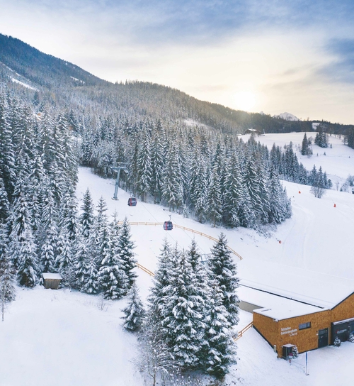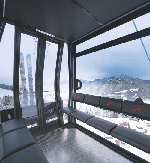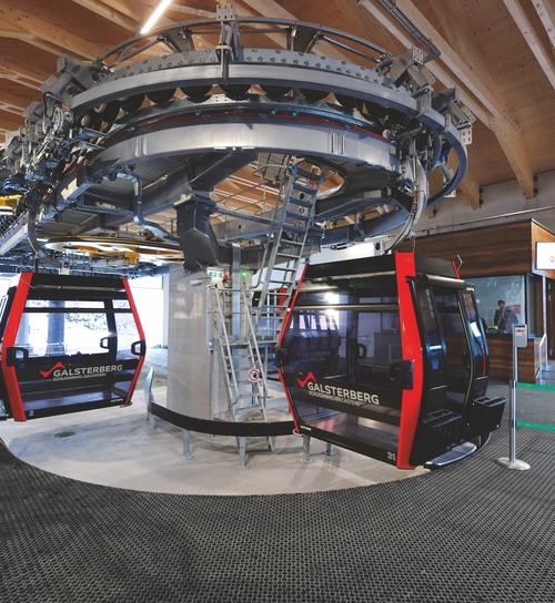Die mit LEITNER DirectDrive ausgestattete GD10 „Galsterbergbahn“ ersetzt eine über 30 Jahre alte Gruppenumlaufbahn und schafft damit einen markanten Mehrwert für die Wintersportlerinnen und Wintersportler der Region Schladming-Dachstein. Die geräumigen Diamond EVO Kabinen in der Ausführung „XL Deep“ sorgen mit gepolsterten Einzelsitzen und viel Beinfreiheit für höchsten Fahrgastkomfort. Zudem schaffen die großzügigen Glasfronten einen 360° Panoramablick auf die umliegende Bergwelt. Besonderen Wert legten die Betreiber auf die harmonisch an die Umgebung angepasste Umsetzung der Stationsgebäude, die – stimmig zur Bautradition in der Region – in der typischen „Schindel-Optik“ umgesetzt wurden. Durch den Neubau der Hauptseilbahn erfährt insbesondere auch die kinderfreundliche und attraktive Talabfahrt, welche bereits im letzten Jahr im oberen Bereich verbreitert wurde, eine enorme Aufwertung und sorgt für eine optimale Gästeverteilung am Berg.