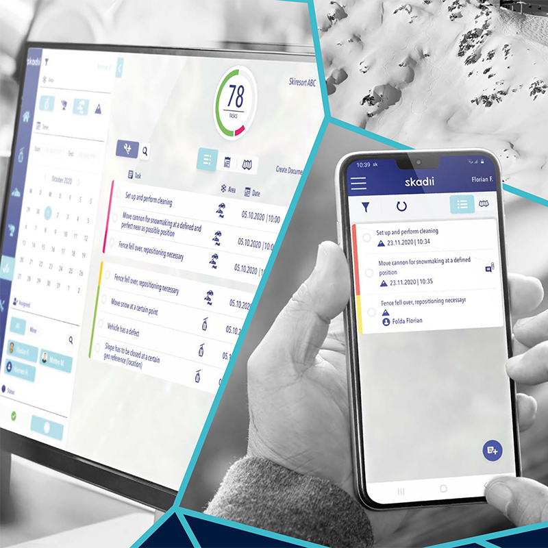 The skadii digital, open Resort Management Platform by HTI Digital was launched in 2019. With this, ski resorts coordinate various software and hardware providers on a digital interface with a single online access. It can be operated intuitively and efficiently. In the meantime, more than 200 ski resorts worldwide have access to skadii and use it to manage their systems. Now, the ski resort management platform has been enhanced with three new applications. Task Manager, Maintenance Overview and Global Map bring new functions and simplify the use of the platform.