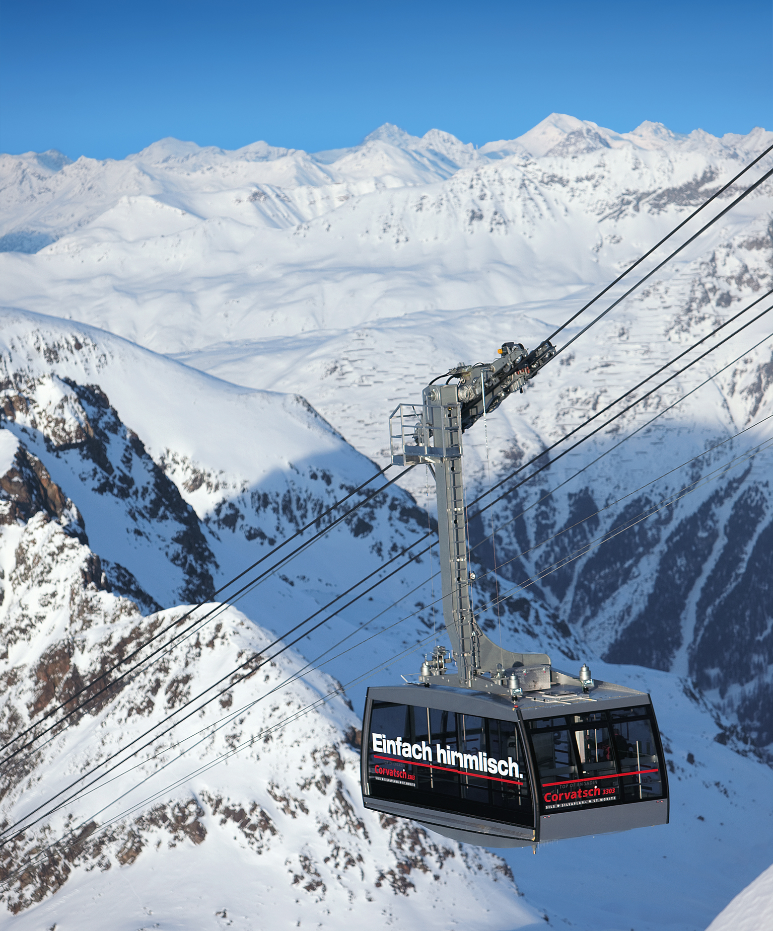 Technically demanding aerial tramway to the Corvatsch (CH)