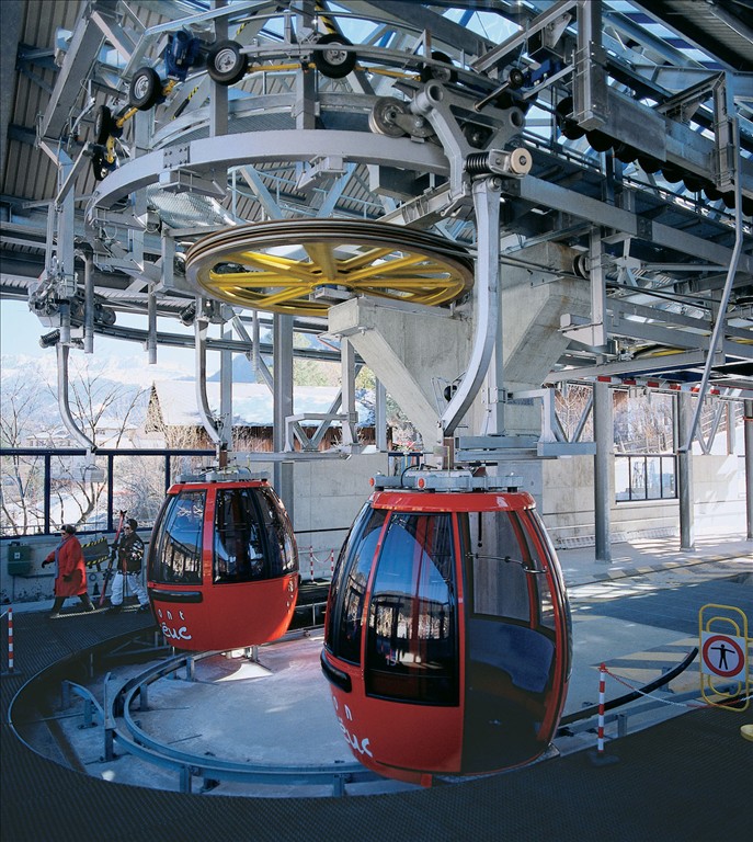 The 2S gondola lift was installed in 1999 and replaced two aerial tramways. It was a good alternative to the aerial tramways for the hill with a gradient of 70%. Only two pylons were required. Leitner installed one of its own proven gearbox systems. Leitner was at that time the only company worldwide that produced its own gearboxes. The ropeway to the Alpe di Siusi was the most modern ropeway in Italy in 1999.
