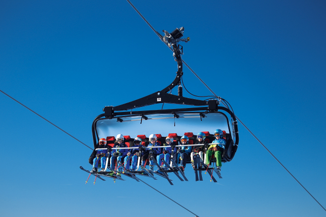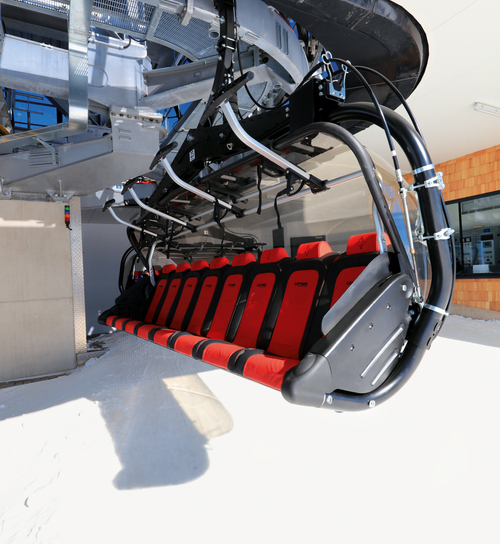 Elegant design and expertise from the automotive industry: With its fusion of high-end design and unparalleled comfort, LEITNER ropeways has elevated chairlift seating to luxurious new heights. This high-quality Premium Chair made its debut on the new Brunn eight-seater chairlift. Design elements and expert knowledge from the world of automotive engineering were woven into the development of the LEITNER Premium Chair. The seats feature an ergonomic design and real leather upholstery, the combination of genuine leather slip-proof seats and the lockable safety bar also ensures the very