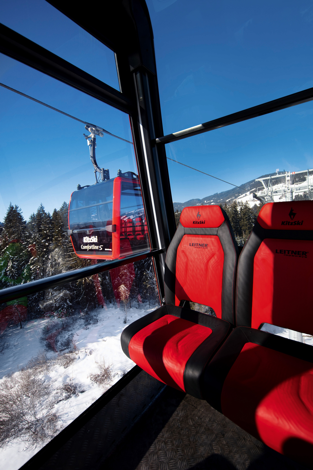 The “Fleckalmbahn” gondola lift in the popular Tyrolean winter sports resort of Kitzbühel features numerous technological and design innovations that guarantee maximum ride comfort and sustainability. The Luxury cabin Symphony 10 with its elegant Pininfarina design offers the greatest passenger comfort currently available on the market. The cabin is equipped with ergonomically designed single seats with leather covers and another world’s first: heating elements at lower-back height. Like the cabin, the stations are designed in the Pininfarina style and equipped with an extensive array of functions powered by LEITNER ropeways technology. The new Fleckalmbahn is a significant technological milestone in our long-standing partnership with Bergbahn AG Kitzbühel.