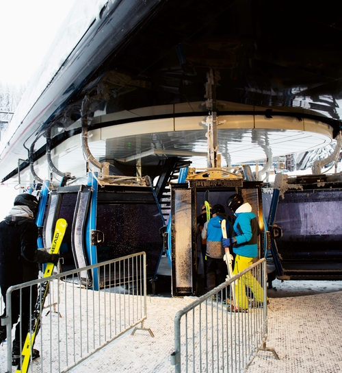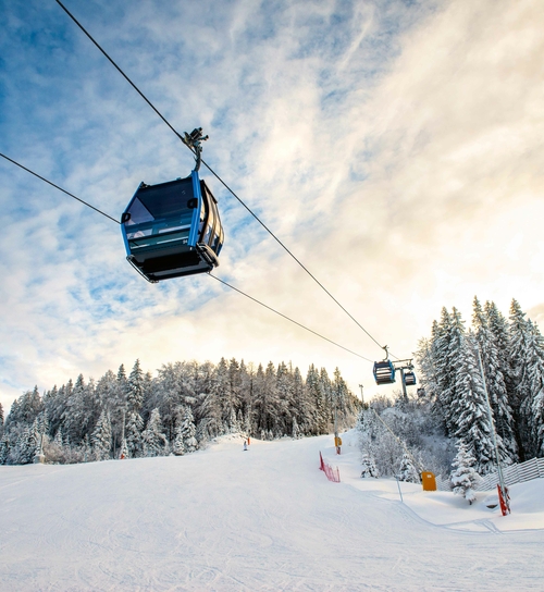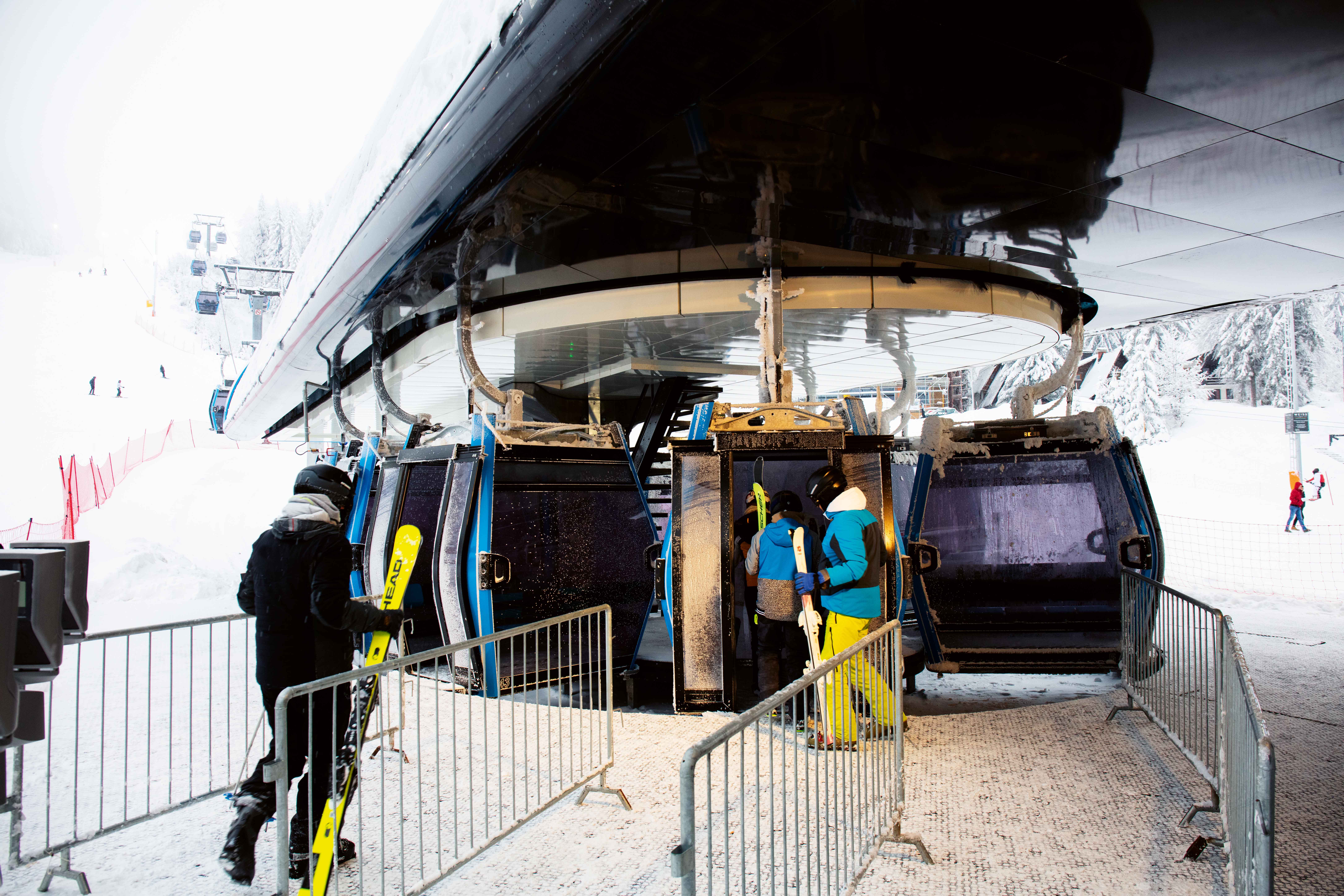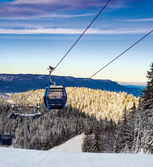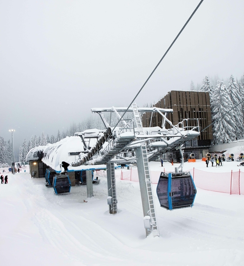 LEITNER’s expertise was on display once again at Jahorina near Sarajevo, site of the 1984 Winter Olympics. At the heart of renewals is the “Poljice” 10-passenger gondola lift, which plays an important distributing role due to its central location in the resort. It replaced a smaller installation when it began operation in December 2021, thereby improving speed and  capacity, and it represents the very best and latest technology with proven components. There is a new Pininfarina-designed station building, whose covering is carried over to the adjacent building and a café above. The underground garaging system and some of the components of the old 6-seater chairlift remain, however.