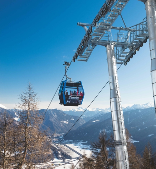 A new ropeway era began at Rosskopf in Sterzing in December 2022. Very near to LEITNER’s headquarters, the resort’s  6 passenger gondola lift, which was commissioned right back in 1987, has now been replaced by a modern 10 passenger gondola system. The GD10 Rosskopf travels along exactly the same route, including the wellknown crossing of the Brenner freeway, and has been equipped with the eco-friendly, maintenance-friendly LEITNER DirectDrive and new Premium Diamond EVO Premium cabins. This ropeway is especially quiet and easy on resources due to its direct drive system. Its 65 cabins offer exceptionally comfortable seating and a unique, all-round viewing experience. New buildings and architectural touches have been included. New stations buildings were completed at the top and bottom of the ropeway when the gondola lift was built. The bottom station also has space for new offices for Sterzing Tourist Board.
