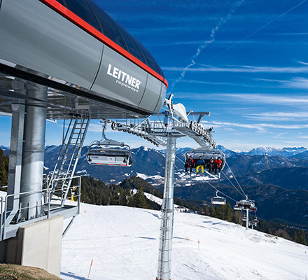 Después de las experiencias positivas de Brauneck- und Wallbergbahnen GmbH con el teleférico idéntico Milch¬häuslexpress, la dirección eligió nuevamente al proveedor probado y de confianza al modernizar el teleférico en Jaudenhang, en la popular estación de esquí familiar. El nuevo Schrödelsteinbahn está equipado con burbujas. reposapiés individuales y calefacción de asiento. En comparación con el predecesor del teleférico Finstermünz, la capacidad de pasajeros ha aumentado de 650 a 2400 entusiastas de los deportes de invierno por hora. Además de su respeto al medio ambiente gracias a la tecnología DirectDrive de LEITNER especialmente eficiente en energía, la implementación se centró particularmente en funciones amigables para los niños. Por ejemplo, el teleférico tiene barras de seguridad de bloqueo automático y una cinta transportadora de embarque con una plataforma elevadora automática para facilitar el acceso.