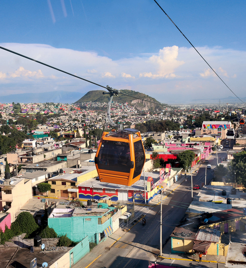 Desde octubre del 2016 circulan dos telecabinas de LEITNER ropeways por el poblado barrio de Ecatepec de Morelos en la mayor metrópolis de México, con un recorrido de cinco kilómetros. El primer teleférico urbano de México funciona durante 17 horas diarias y transporta a 17 000 personas. Para los habitantes y los visitantes de Ecatepec de Morelos, esta conexión supone un avance y una mejora de la calidad de vida sustanciales.