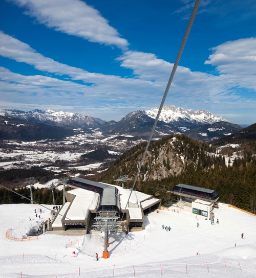 En la conocida zona del monte Jenner en el lago Königssee se han construido los telecabinas para 10 pasajeros Jennerbahn I + II, y el telesilla de 6 plazas Jennerwiesen. Los nuevos teleféricos de Jennerbahn aportan un diseño moderno y aún más comodidad a la zona del lago Königssee. Están equipados con cabinas Diamond EVO del estudio de diseño italiano Pininfarina con asientos de suave cuero color crema. El vidrio que se proyecta más hacia abajo también ofrece una vista panorámica del lago circundante y el paisaje montañoso.