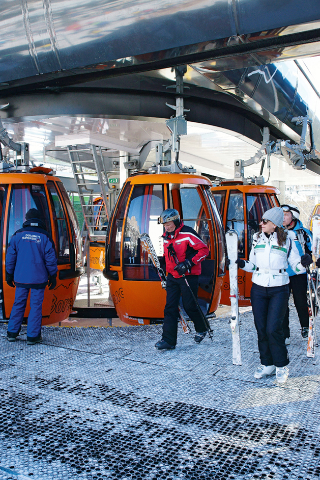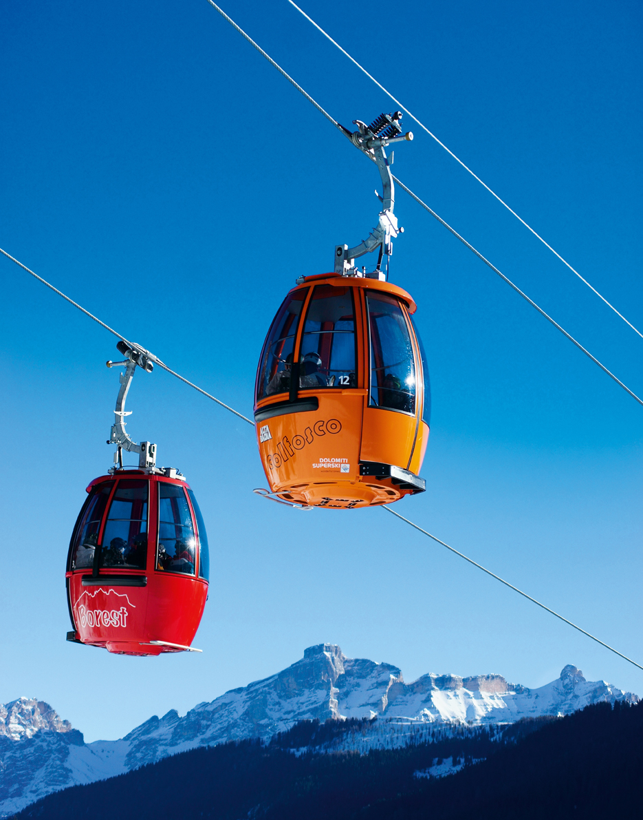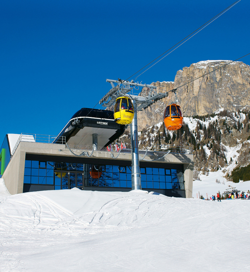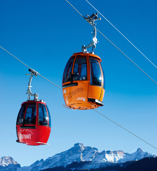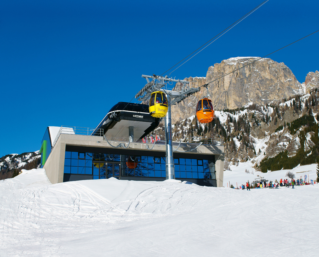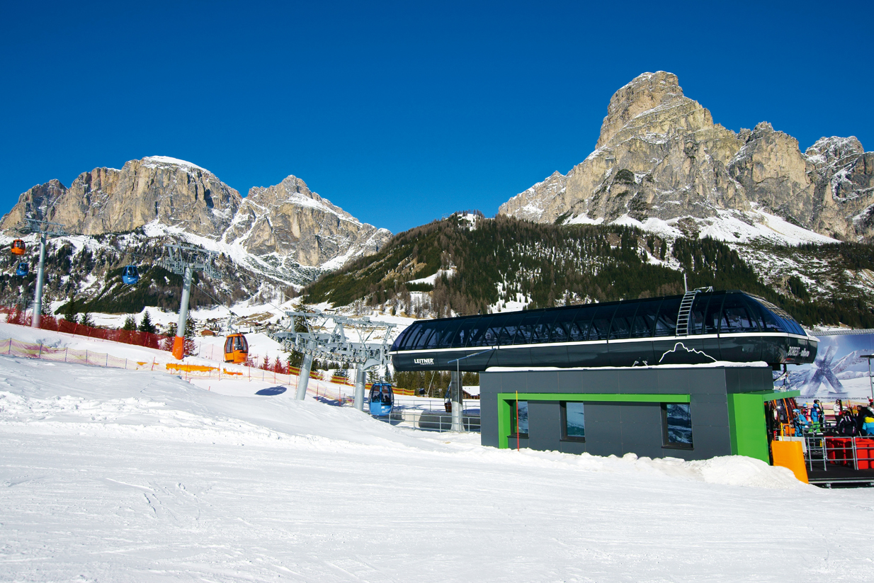 En Colfosco, en Alta Badia, debajo del Paso de Gardena, un moderno telecabina de 8 plazas sustituye al viejo telesilla "Borest", mejorando la calidad del servicio y reduciendo significativamente los tiempos de viaje, en beneficio de los atletas que participan en el famoso Tour del Sellaronda. Gracias al accionamiento directo DirectDrive y cuatro convertidores LeitDrive, ambas exclusivas de LEITNER ropeways, la instalación está a la vanguardia también en términos de eficiencia y sostenibilidad ambiental.