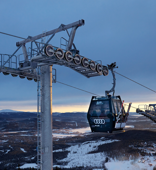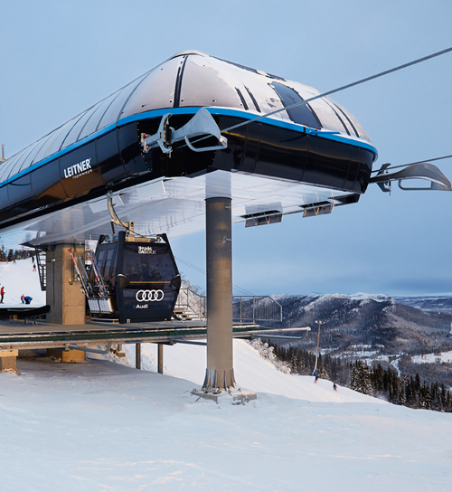 La estación de esquí de Funäsfjällen, en el centro de Suecia, combina la típica calidad escandinava a una amplia variedad de ofertas para el deporte y el ocio. El teleférico conecta la ciudad de Funäsdalen con el Monte Funäsdalsberg. Con este proyecto estratégicamente importante, LEITNER ropeways confirma así su posición de líder en el mercado sueco. Incluso en Funäsdalen LEITNER se propone de nuevo como el único proveedor para todas las tecnologías de invierno: además de los teleféricos, de hecho, en la estación se utilizan también las maquinas pisanieve PRINOTH y las de innivaciónde de DEMACLENKO.