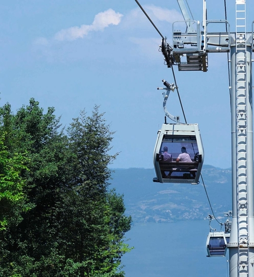 The new GD8 “Sapanca” gondola lift begins near the main transport route between Istanbul and Ankara about 10 kilometers from the local rail station, and carries visitors from there up on to the local viewpoint, 320 meters above. This 8-passenger gondola lift is the first in Turkey to be equipped with LEITNER’s new Diamond EVO Premium cabins. A total of 36 cabins travel at a speed of 5 m/s, providing safe, comfortable transport between mountain and valley over a distance of around 1.5 kilometers. The bottom and top stations are each integrated into the existing buildings, which minimizes the encroachment of building work into the natural surroundings and means that all of the important facilities are very close to the entrance and exit.