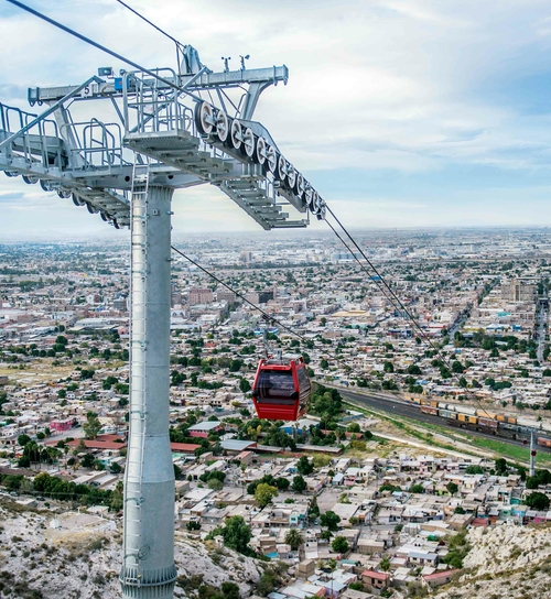 Muy por encima de la ciudad de Torreón, en el norte de México, la radiante figura blanca de Cristo recibe a los peregrinos y turistas con los brazos abiertos. Cada año, miles de personas acuden a este lugar de peregrinaje en el estado de Coahuila. Hasta ahora, muchos visitantes han subido a pie al cerro de las Noas para ver el famoso monumento, la iglesia y el restaurante panorámico. Desde 2017, pueden subir a un cómodo teleférico directamente desde el centro histórico de la ciudad del desierto hasta la estatua de 22 metros y disfrutar de la fabulosa vista allí. La administración municipal de Torreón, al borde del desierto de Chihuahua, también hizo construir un parque y una ruta para bicicletas de montaña además del teleférico, para hacer que la zona sea aún más atractiva para los turistas.
