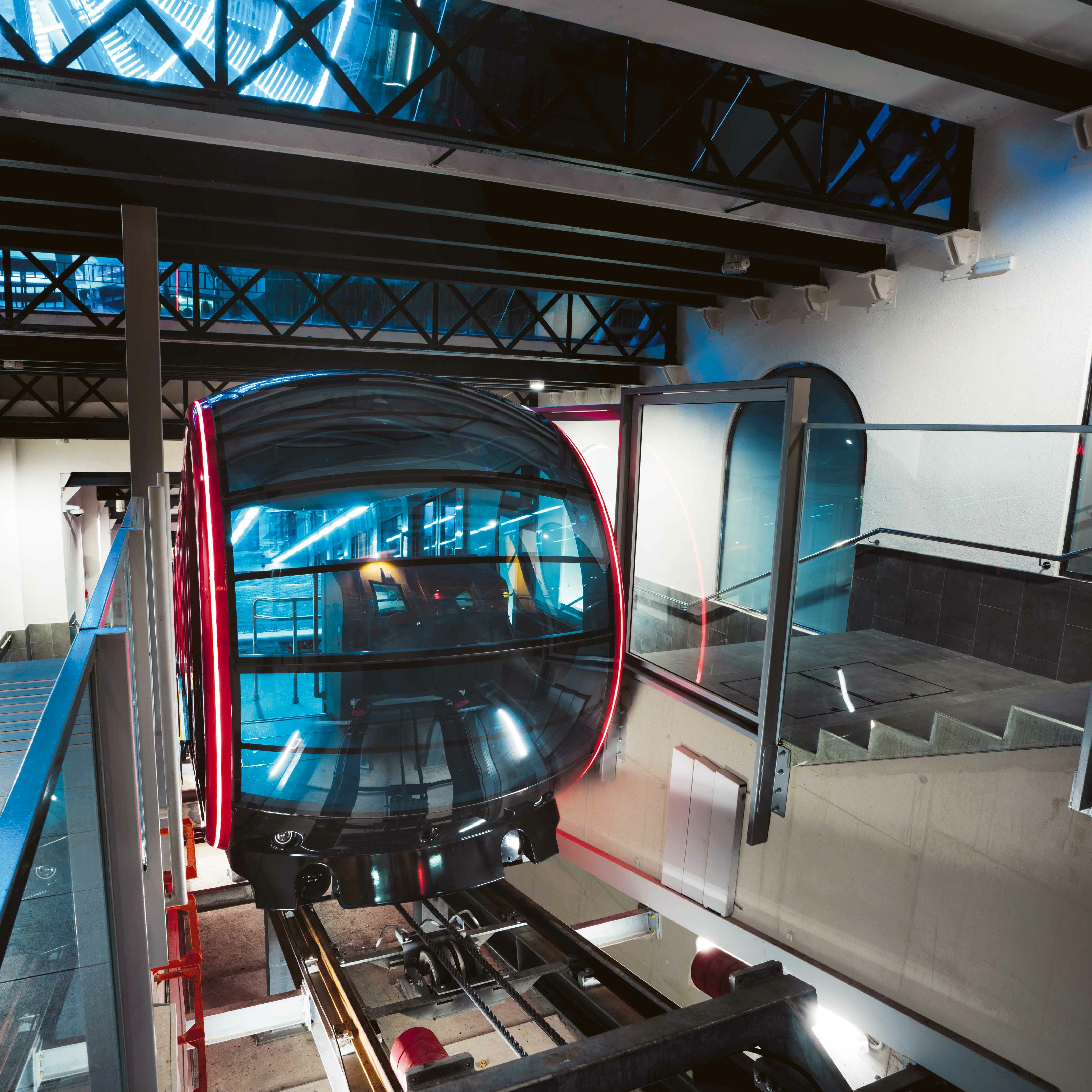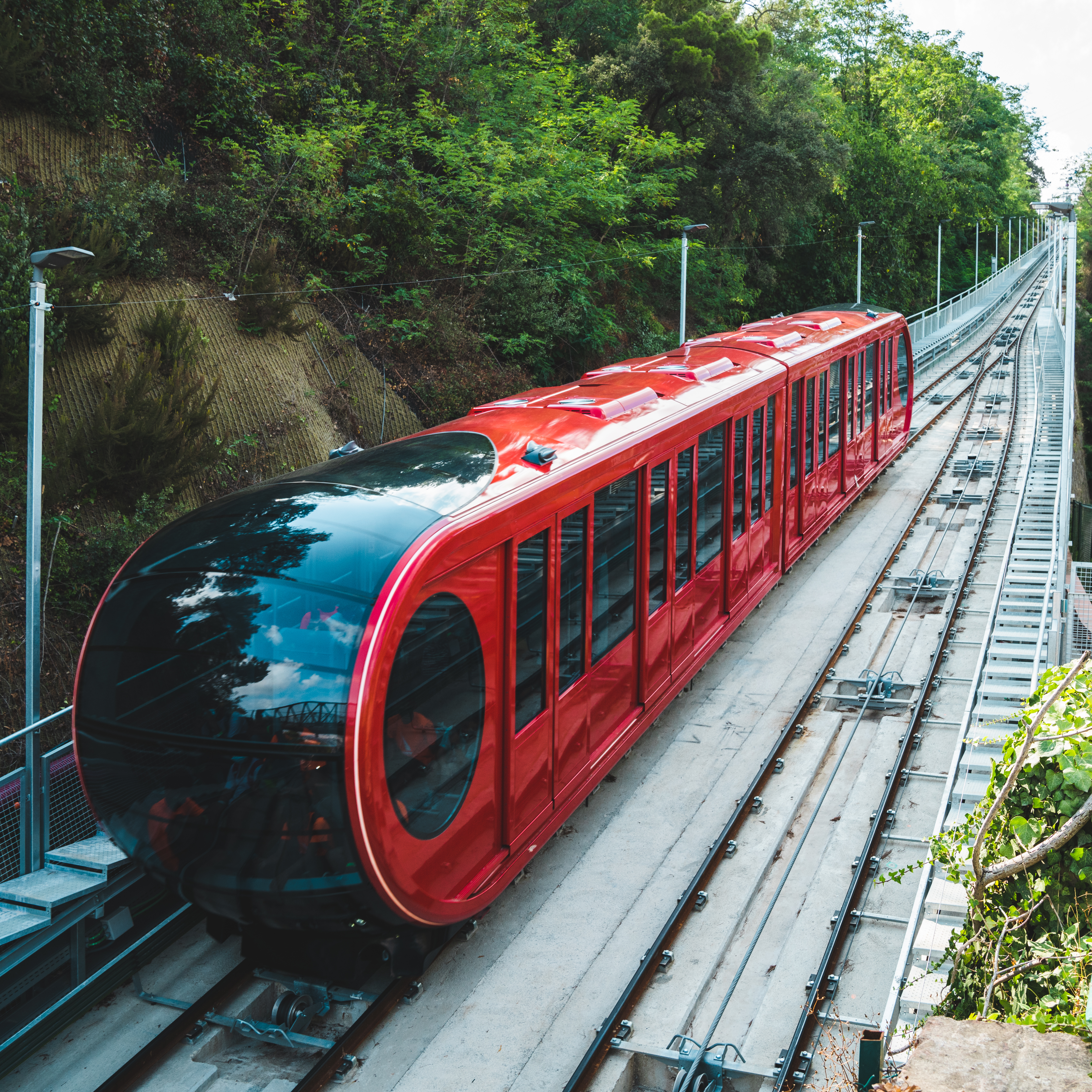 Bei der Bahn auf den 512 Meter hohen Tibidabo in Barcelona wurde im Zuge eines umfassenden Revitalisierungsprogramms ein völlig neues Kapitel aufgeschlagen. LEITNER war für die Erneuerung der Bahnsteuerung, die Lieferung der zwei Wägen sowie die Einrichtung der Seilrollen und Schienen, Stationseinrichtungen und der automatischen Bahnsteigtüren verantwortlich. Die Geschwindigkeit erhöht sich von vier auf zehn Meter pro Sekunde, die Beförderungskapazität von 120 auf 252 Personen pro Fahrt. Neben der Vielzahl an technischen Neuerungen und der Integration eines neuen Sicherheitssystems lag der Fokus auf der Gestaltung der Bahn. So schafft die Erneuerung des Designs mehr Fläche in den Kabinen, einen verbesserten Panoramablick und mehr Komfort. Neben einer spürbaren Lärm- und Schwingungsreduktion tragen Klimaanlagen, ein barrierefreier Einstieg und ergonomisch geformte Sitze zur entspannten Bahnfahrt bei. Letztere wurden in einer semi-transparenten Ausführung erstellt und lassen den Raum durch diesen Effekt noch größer erscheinen. Weithin sichtbar ist die Bahn aufgrund der markanten Außenbeleuchtung in futuristischem Styling vor allem in der Dunkelheit.