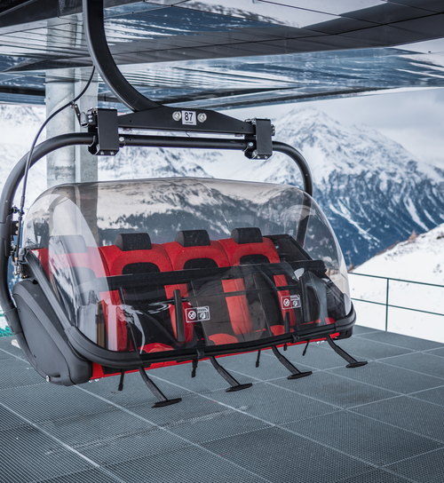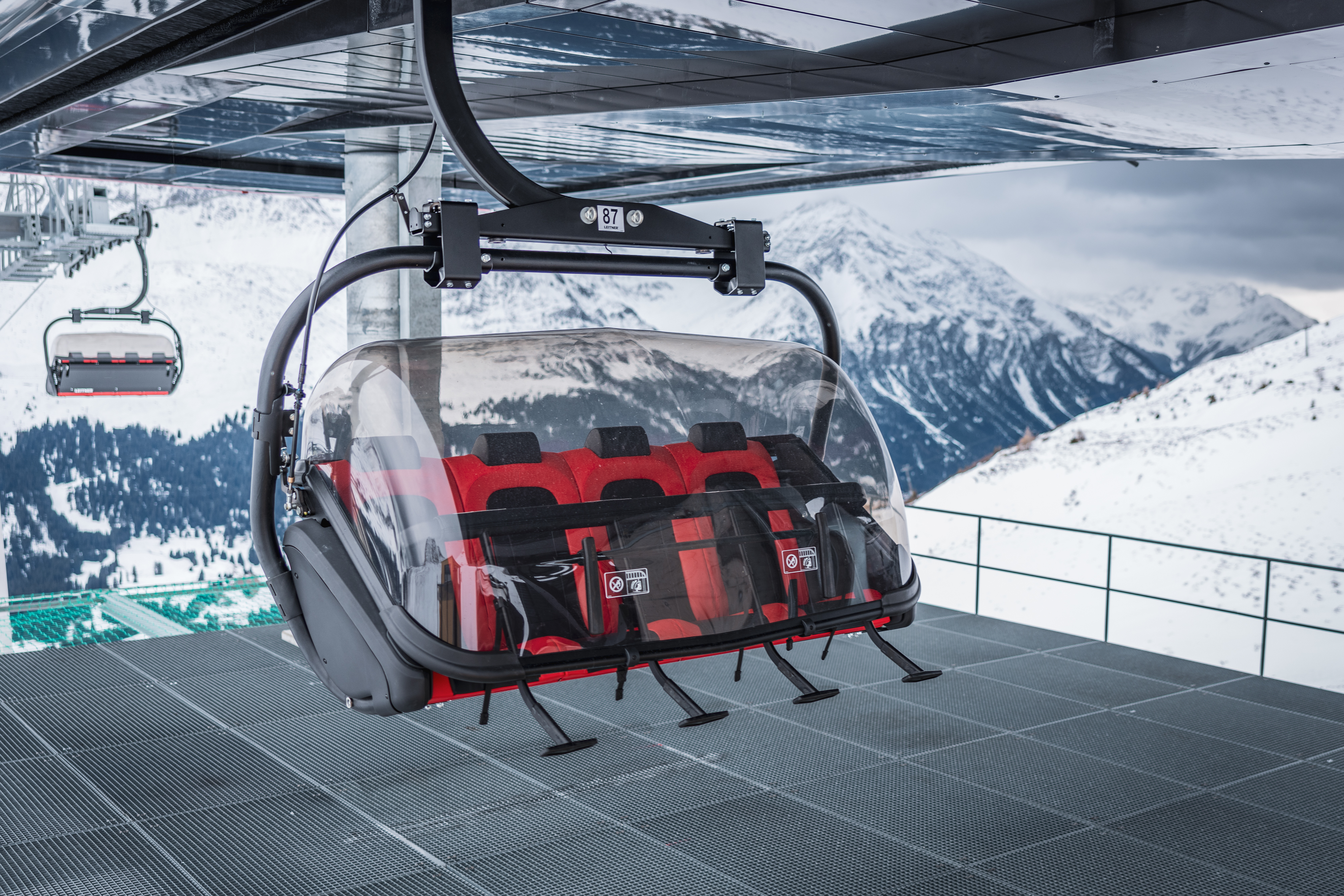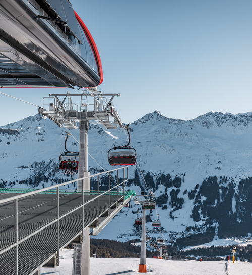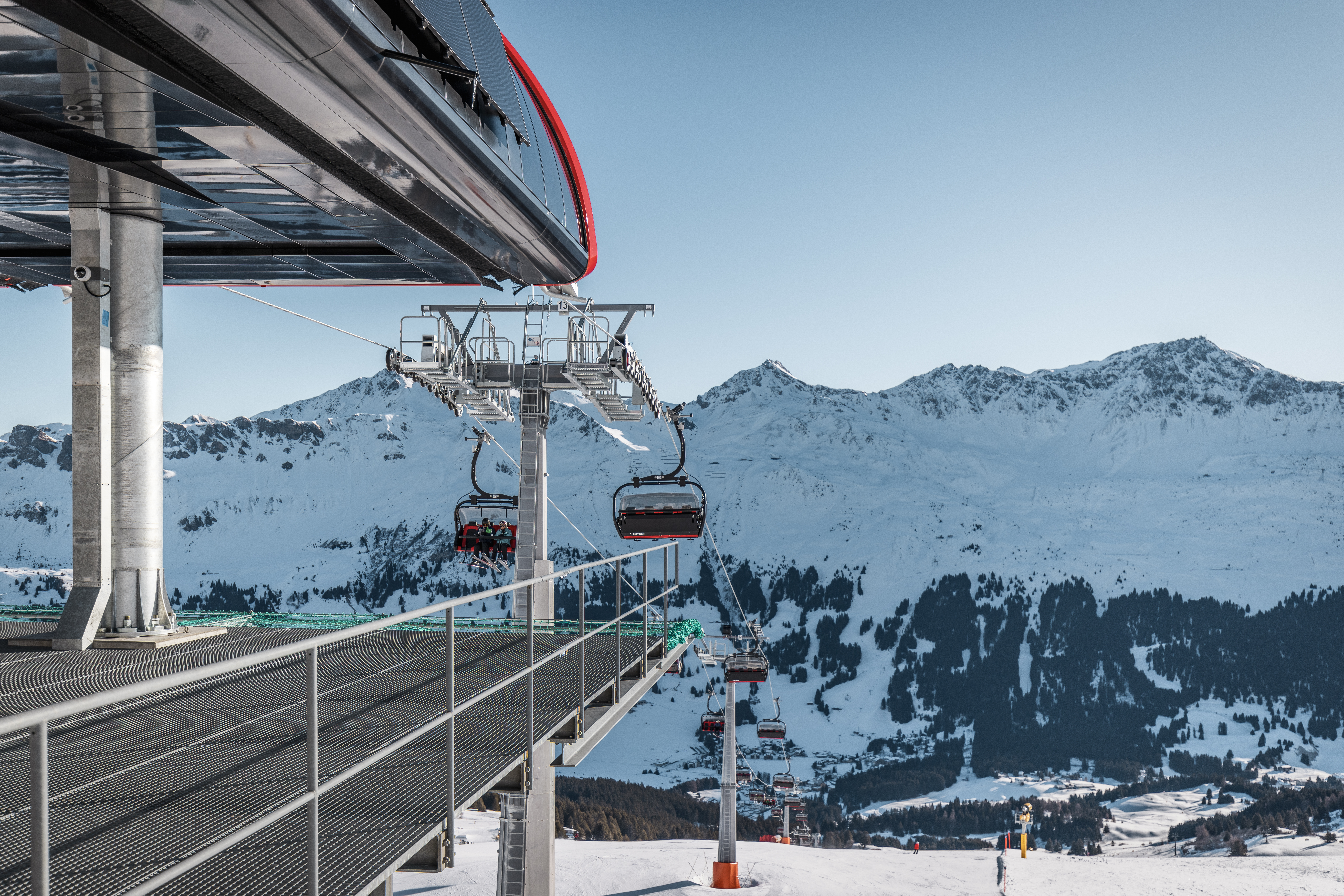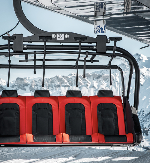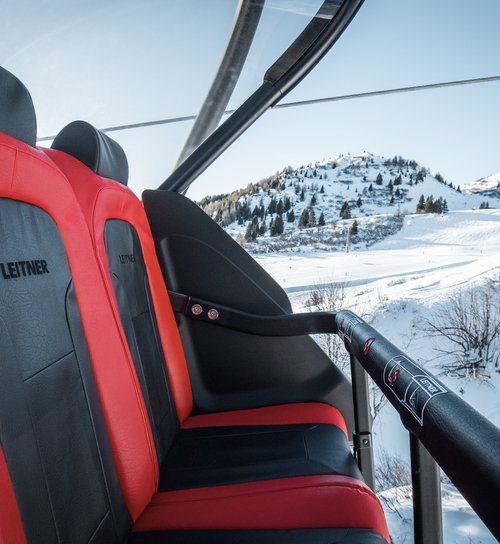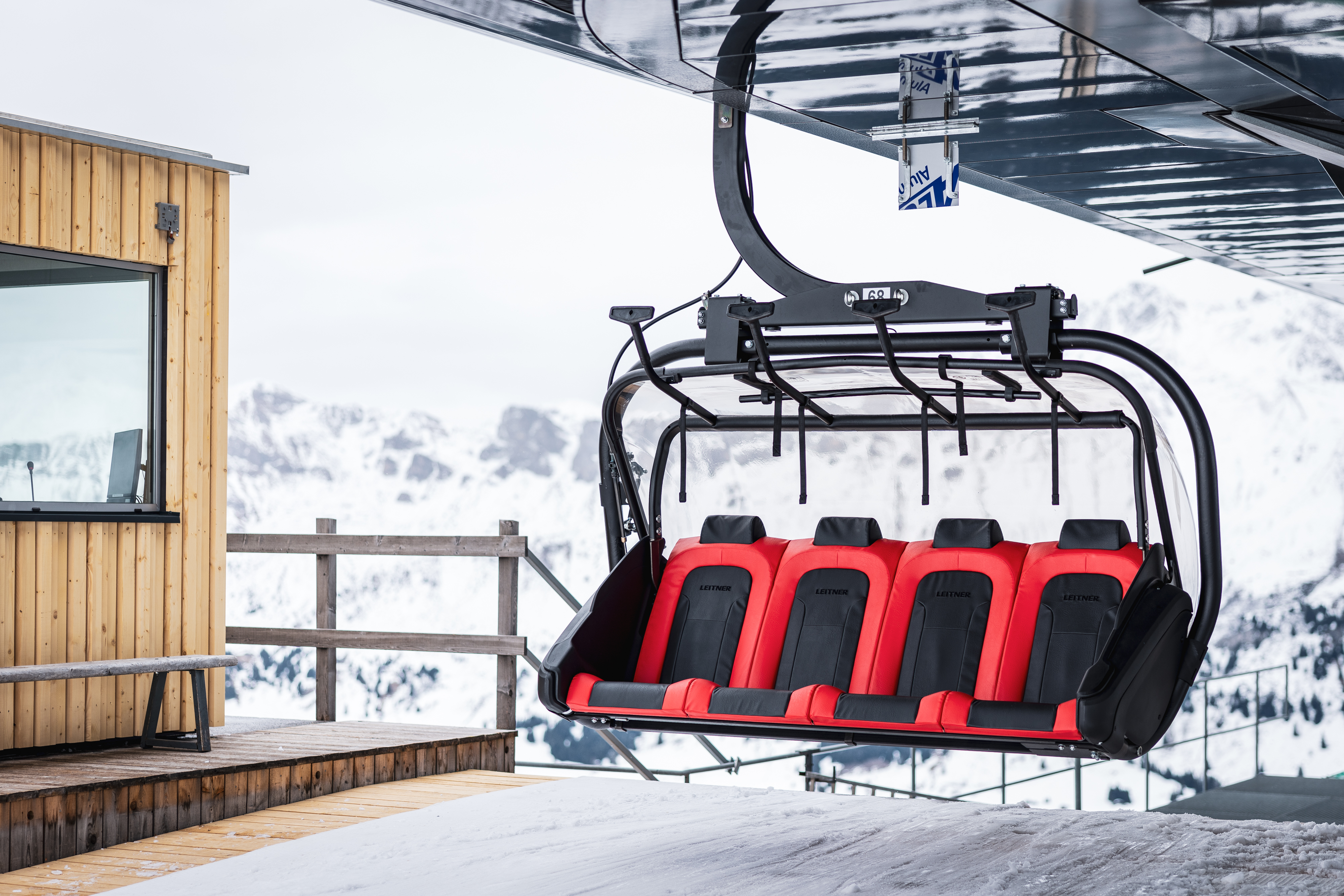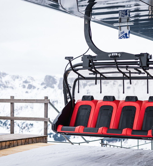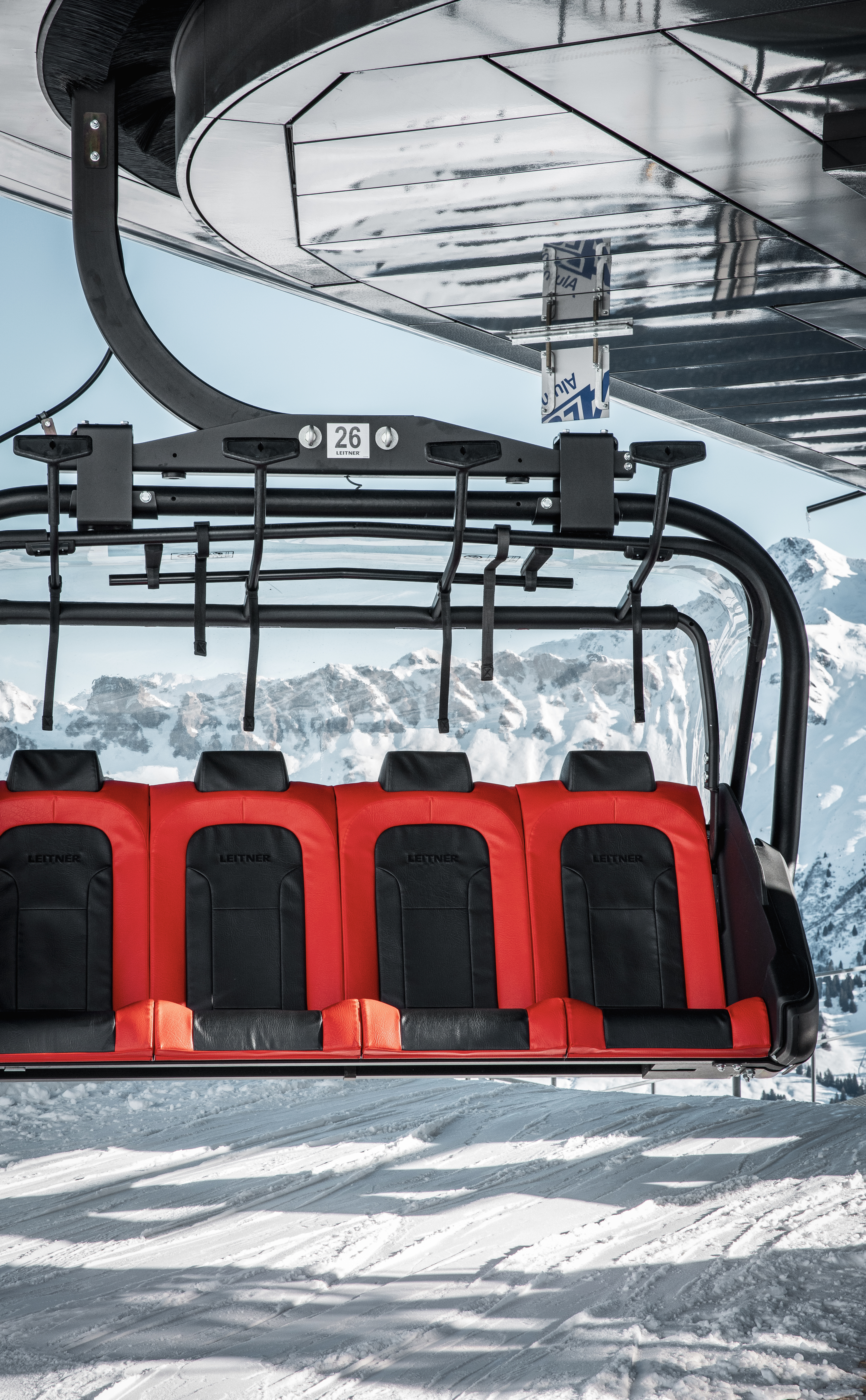 In the popular skiing area of Arosa Lenzerheide, one of the largest winter sports destinations in the Swiss Canton of the Grisons, LEITNER has blended innovation and sustainability in the shape of a state-of-the-art 4-seater chairlift. The new CD4C “Stätzertäli” is a replacement for an existing 4-seater chairlift and was designed as a retrofit project, using the same route as the old ropeway and many of its towers and foundations. This resourcesaving approach to the build keeps the carbon footprint of the ropeway to a minimum and underscores its sustainability credentials. Additional solar panels on the top station provide a means of renewable energy generation, while state-of-the-art ropeway technology– including highly efficient LEITNER Direct-Drive, energy-saving LEITNER EcoDrive, andadvanced control systems – guarantees that everything runs smoothly. As well as focusing on sustainability, ropeway operator Lenzerheide Bergbahnen AG was also keen to make a statement in terms of design. The chairlift features elegant Pininfarina visuals and is both a functional and eye-catching addition to the skiing area. For passengers riding in the highquality Premium Chairs EVO, every trip on the CD4C “Stätzertäli” is an experience in itself. Skiers and snowboarders who value quality and ride comfort will feel right at home.