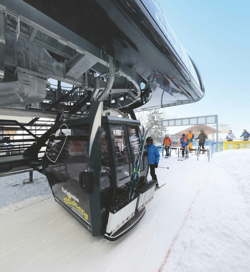 Justo a tiempo para el 50.º aniversario de la estación de esquí, la finalización del nuevo «TMX6-10 Rittisbergbahn» ha significado una modernización importante que proporciona una gran flexibilidad y una ventaja clara en términos de rendimiento a la región de Schladming-Dachstein. Para alcanzar la estación superior, situada a 1500 metros, ahora se tarda poco más de tres minutos, casi la mitad que con el remonte anterior. Gracias a su «tecnología 3 en 1», puede funcionar como telecabina, telesilla o una combinación de ambos sistemas. El sistema Telemix del Rittisberg es una solución perfecta para el uso versátil de este destino tan popular entre las familias. El esquí de fondo y las excursiones con raquetas de nieve están adquiriendo cada vez más importancia. Con su combinación de cabinas y sillas, el nuevo remonte ofrece la flexibilidad necesaria para la subida. Otro punto a su favor es que la estructura también permite transportar los trineos para la pista con iluminación nocturna del Rittisberg. En verano se usan solo las cabinas. Gracias al sistema Telemix, está todo listo para la inauguración de la nueva pista para mountainkarts prevista para el verano de 2023. Para transportar los karts se han creado soportes especiales en el exterior de la cabina.