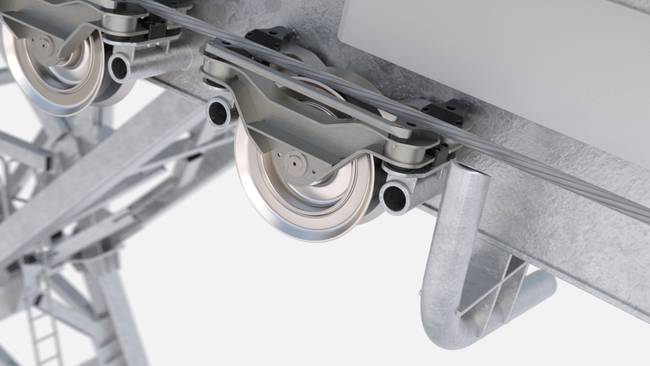 LEITNER ha adoptado los mecanismos de aceleración y desaceleración, la desviación del cable de tracción y las unidades de accionamiento y desviación de la probada tecnología de los teleféricos monocable, que se lleva usando muchos años, y los ha incorporado a la nueva tecnología 2S.