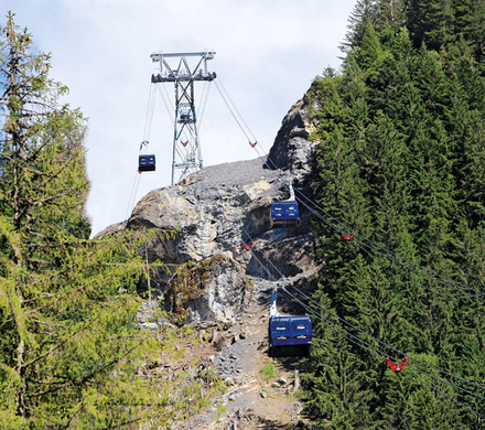 Los Teleféricos unidireccional de 3 cables tienen un solo cable de tracción y dos cables de transporte. El sistema se realiza mediante mordazas desmontables y ofrece una capacidad de transporte muy elevada. Garantizan una mayor resistencia al viento y también pueden salvar grandes luces de más de 3.000 metros. Los vehículos pueden ralentizarse en las estaciones y, con la tecnología stop-and-go, pueden incluso detenerse por completo. Esto garantiza una mayor comodidad al entrar y salir de la cabina.