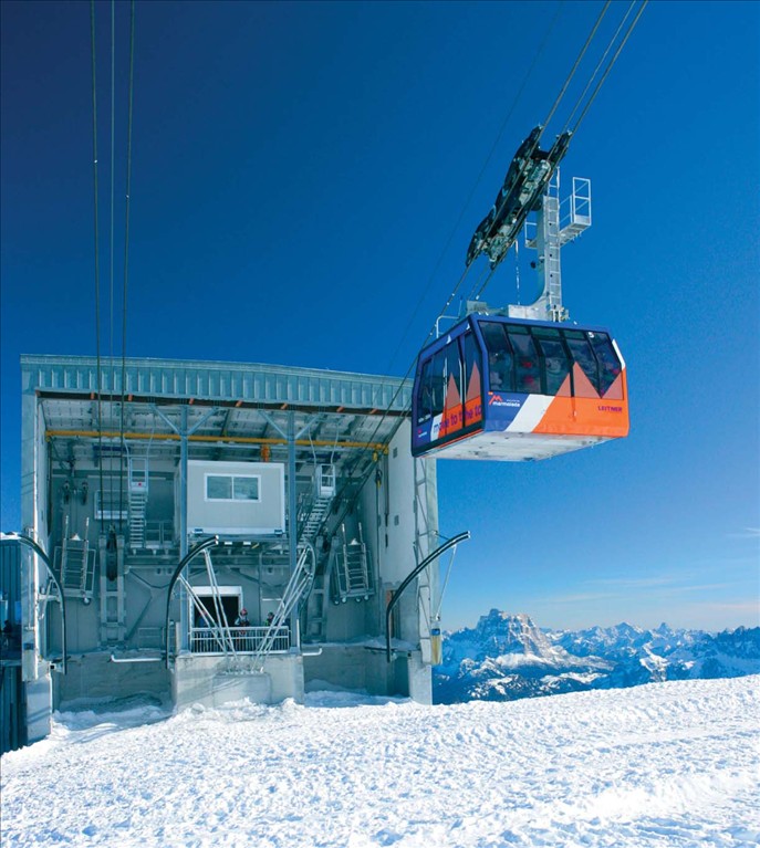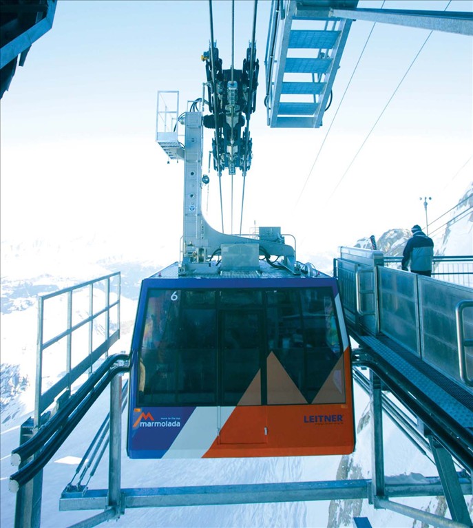 Aucun sommet des dolomites ne suscite la fascination qui rayonne toute l'année de cette région de glaciers majestueuse. C'est pourquoi la cime du Marmolada, la plus haute montagne des Dolomites, est un des incontournables sur les 1 220 kilomètres de pistes du Sellaronda, un domaine skiable de renommée mondiale. Depuis le sommet, une des plus longues descentes des Alpes plonge jusqu'à Malga Ciapela, où se situe la station en aval du téléphérique va-et-vient Marmolada, à 1 482 mètres d'altitude. La nouvelle construction du téléphérique va-et-vient a posé aux techniciens de LEITNER quelques défis au niveau environnemental et de la planification. Un autre défi, logistique celui-là, était le fait que chaque chantier n'était accessible que par téléphérique ou hélicoptère et, qu'ainsi, le poids maximum et les dimensions des éléments de l'installation devaient être les plus faibles possible.
