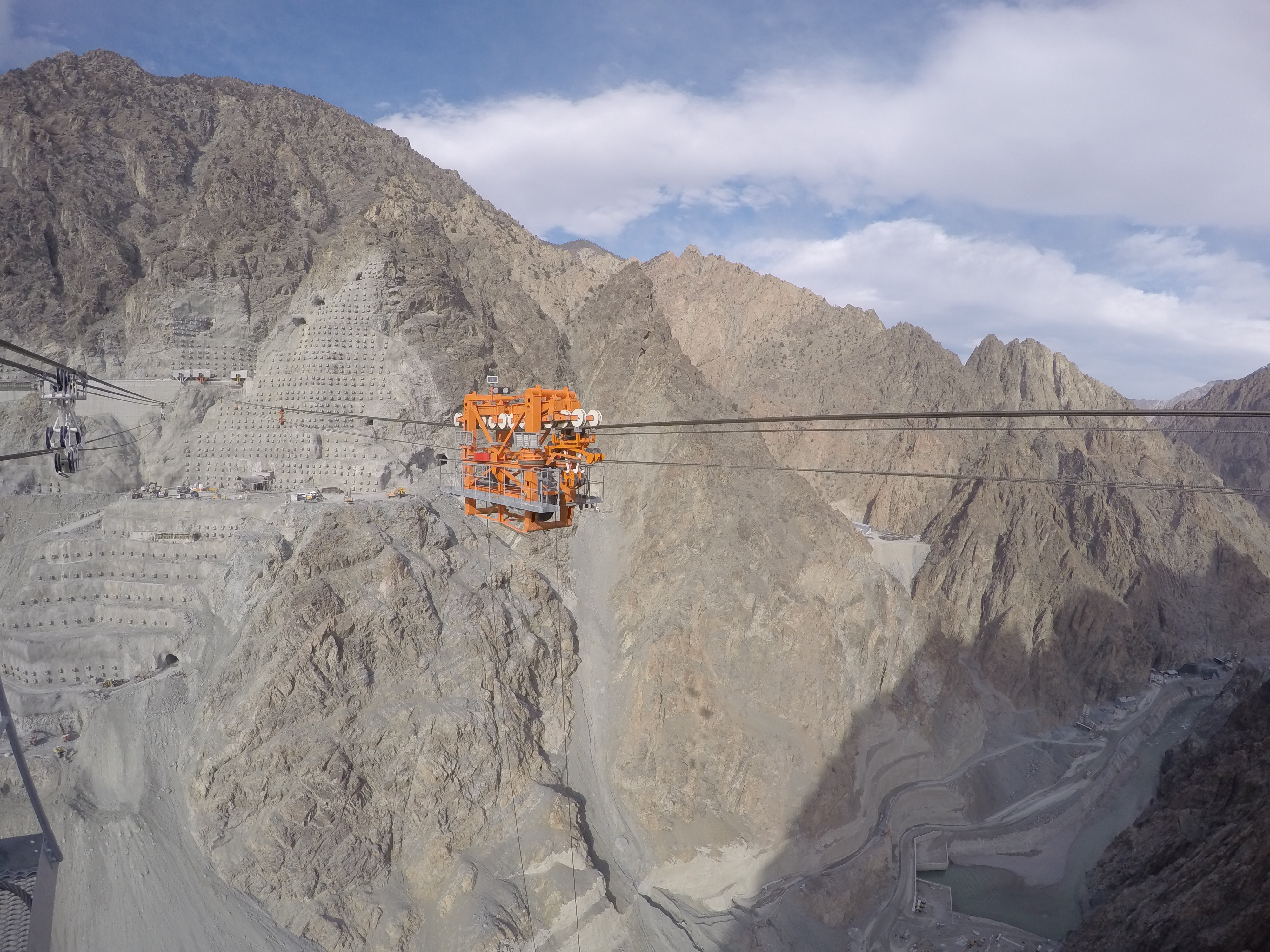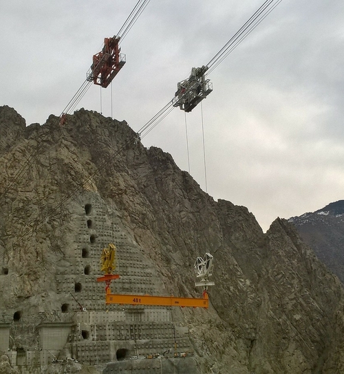 AGUDIO’s cable cranes are currently unparalleled in their performance and reliability, offering 28 metric tons of capacity (or 48 metric tons running two machines in parallel) and, above all, a 300-meter vertical rise.