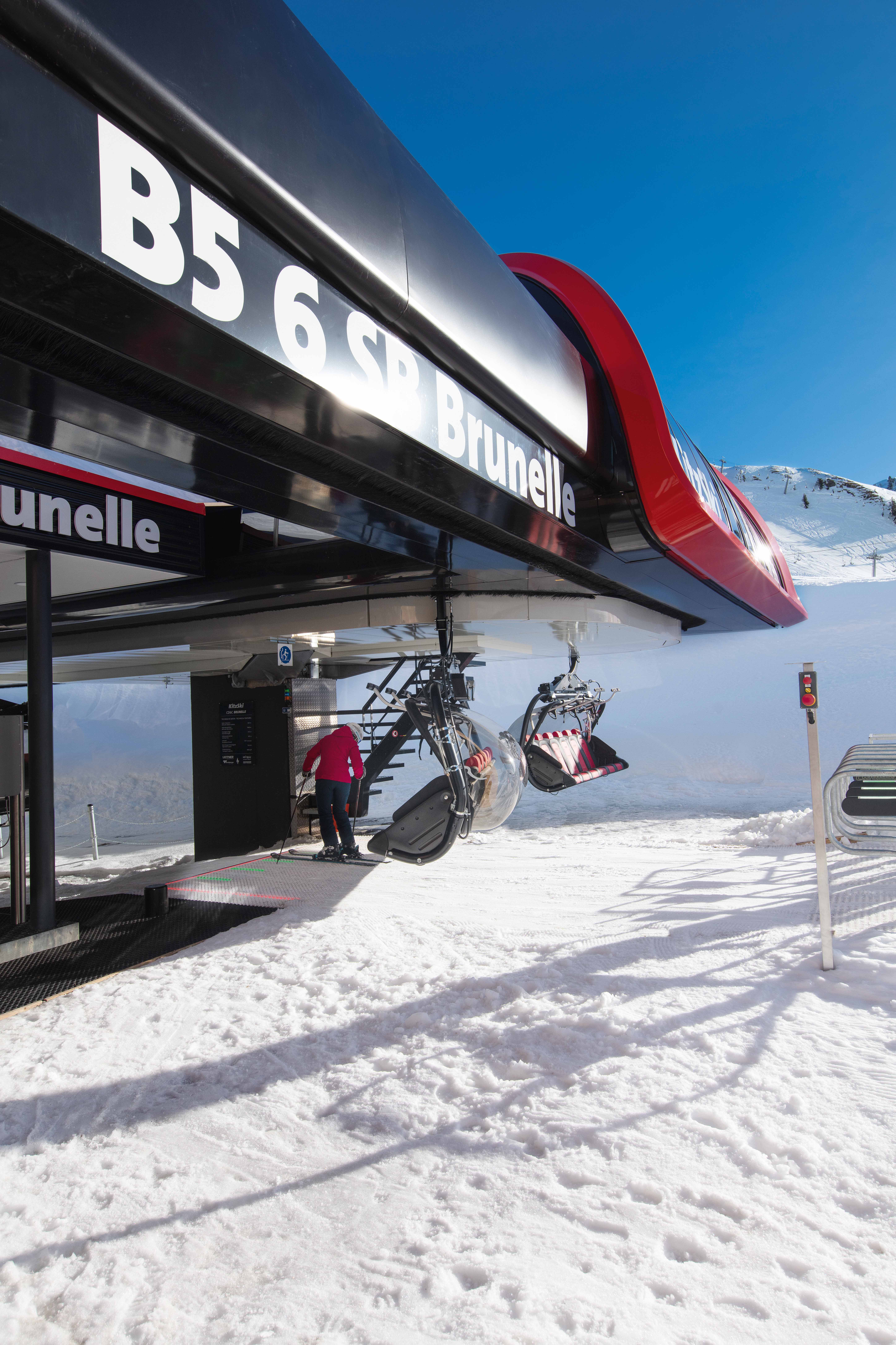 Voici quelques-uns des points forts du nouveau télésiège 6 places Brunelle : il propose des sièges chauffants avec bulle de protection contre les intempéries et des assises habillées de cuir véritable. Le voyage est aussi plus rapide, avec un temps de trajet divisé par 2, soit 4 minutes au lieu de 8. La technologie de pointe du DirectDrive LEITNER garantit, outre les économies d’énergie et une maintenance plus efficace, un moindre niveau de nuisance sonore. Autre point fort, le système d’amortissement latéral qui limite la réaction au vent au minimum absolu des sièges Premium du Brunelle.