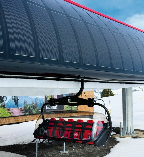 Intent on remaining at the forefront of modern ropeway systems and comfort, Bergbahn AG Kitzbühel once again extended its long-standing, successful partnership with LEITNER. The aging “Gauxjoch” surface lift was replaced by a modern 6-seater chairlift with all the features one could wish for. Every hour, premium individual chairs with intelligent heating and slightly tinted weather bubbles carry 2,400 visitors to this premium ski resort at an impressive speed of 6 m/s. The efficient, resource-saving LEITNER Direct- Drive system is complemented by a LeitDrive frequency inverter which, perfectly attuned to the motor, guarantees a high overall efficiency of 96 percent across every load range. Then there is LEITNER’s Intelligent Heat Detector (IHD) system, which utilizes a heat sensor on one of the ropeway’s vehicles combined with the access barriers, to automatically regulate the seat heating and save energy. This sustainable ropeway also has photovoltaic panels on the station canopy.