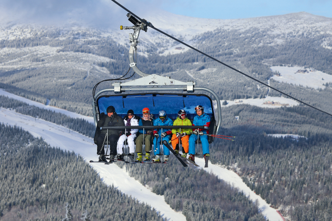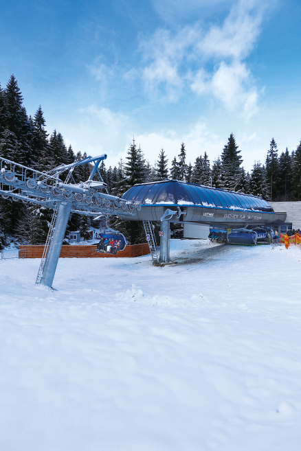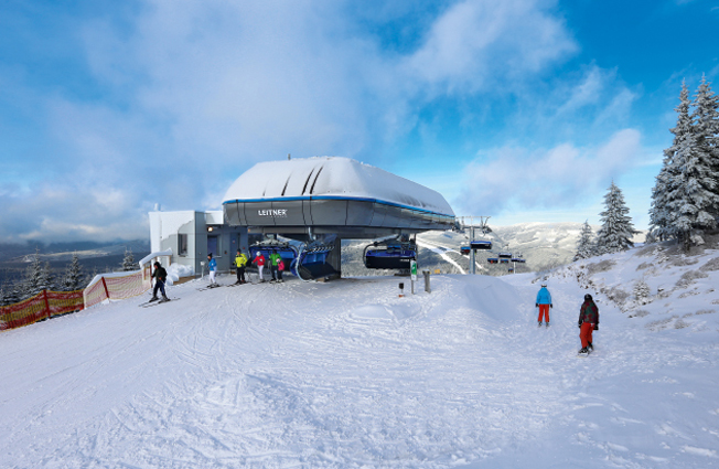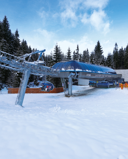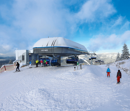 Le domaine skiable de Špindlerův Mlýn est l’un des plus connus et des plus importants de la République tchèque. Cette région située dans les monts des Géants est une destination touristique très appréciée. Le domaine skiable dispose de 15 installations de remontées mécaniques et ses pistes s’étendent sur près de 25 km. Il propose également des pistes de course homologuées FIS. À Špindlerův Mlýn, LEITNER ropeways déploie une technique de pointe pour garantir aux skieurs plus de confort et moins de temps d’attente. L’installation CD6C Plàň est venue remplacer un ancien télésiège 4 places. Elle est équipée de coques de protection bleues, d’un capitonnage noir et bleu, de sièges chauffants et de repose-pieds individuels. De plus, elle est dotée du système DirectDrive exclusif et d’un système de stationnement automatique.
