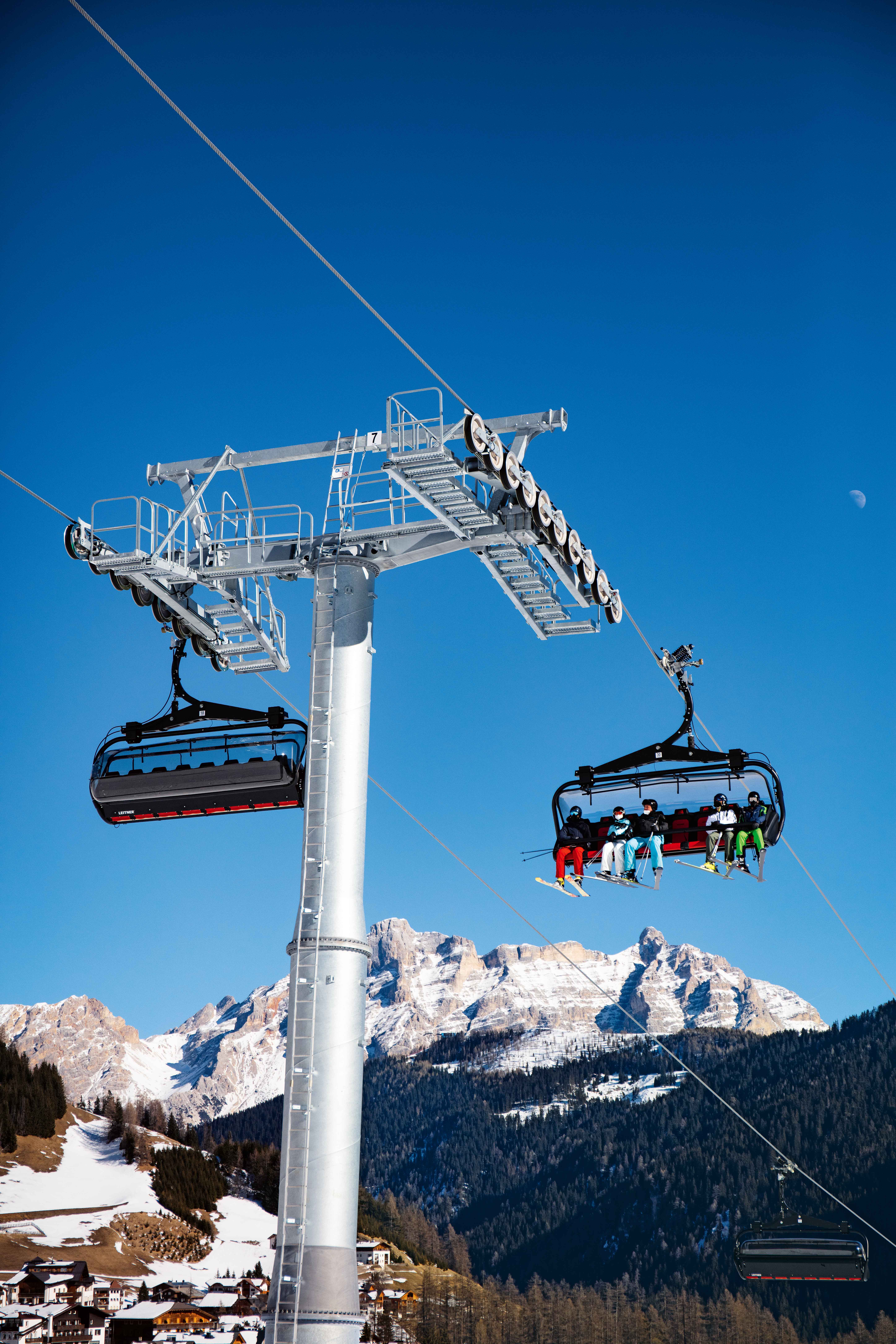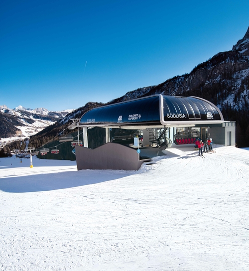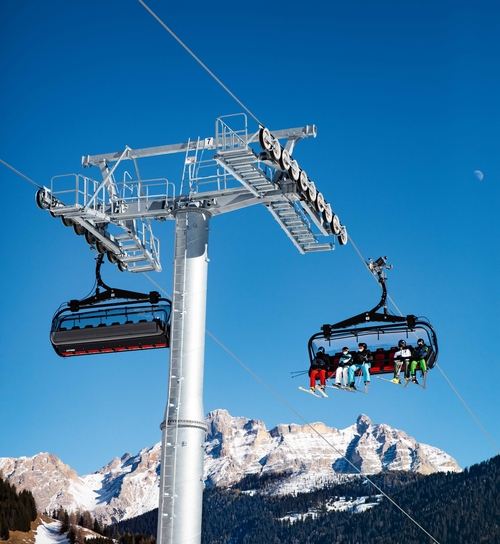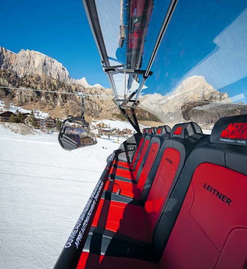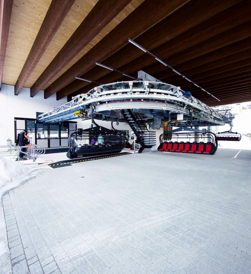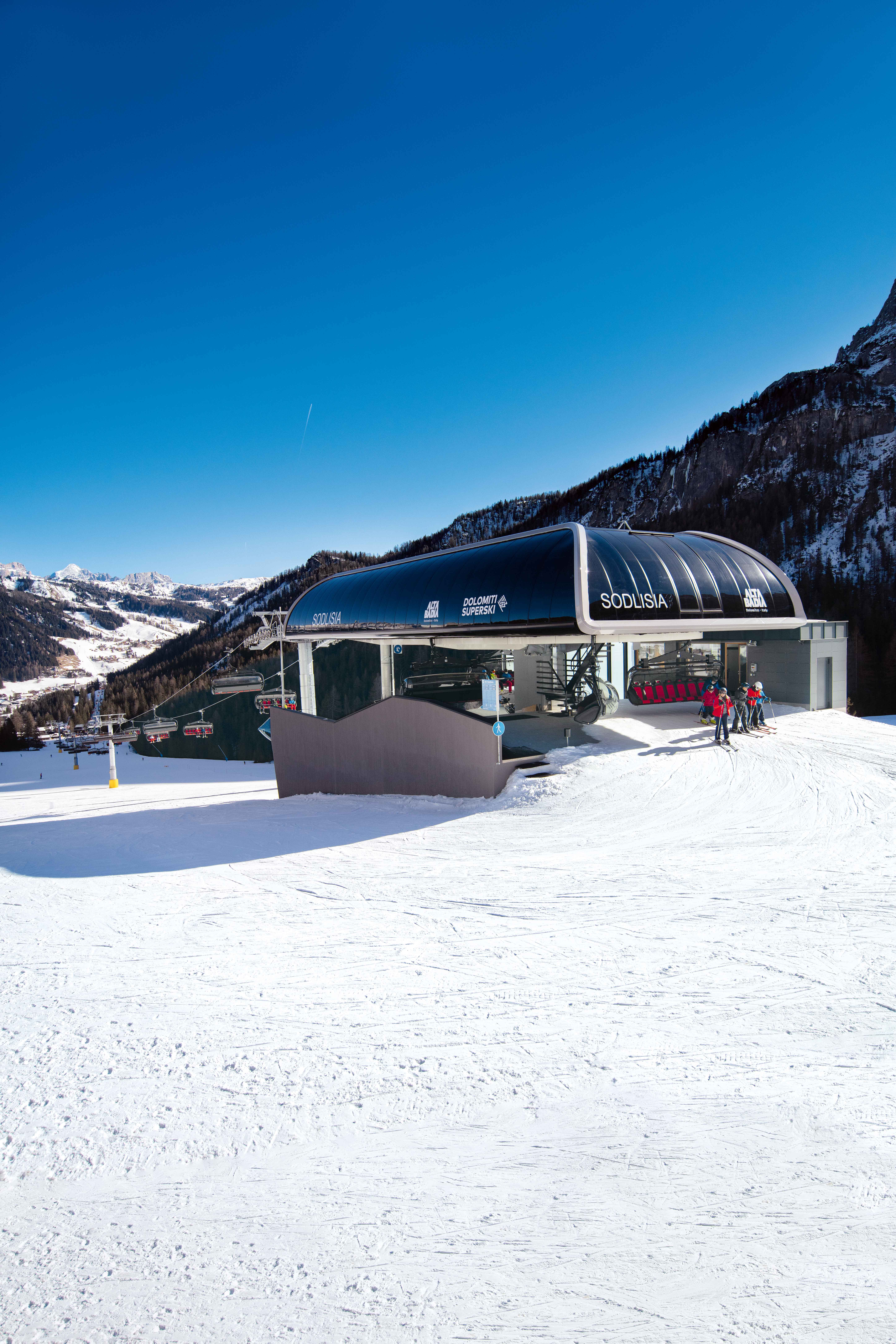 In Colfosco in Val Gardena, South Tyrol, a state-of-the-art 8-seater chairlift has replaced a 4-seater chairlift that was 30 years old. The “Sodlisia” ropeway, which is powered by a DirectDrive, has lockable safety bars, premium upholstery, and weather protection bubbles and significantly increases travel comfort in the ski area, which is part of the Sella Ronda. A new, premium, Pininfarina-designed station was built up on the mountain, while the bottom station of the system is integrated into a newly constructed building that includes underground garaging. With a length of 785 meters, the 8-seater chairlift can carry up to 3,600 people per hour.