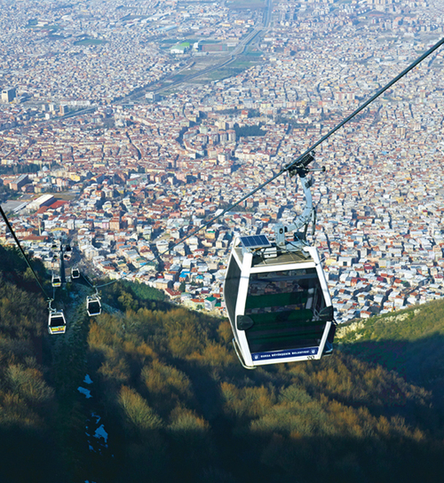 Le confort et l'efficacité de la liaison entre la ville turque de Bursa et une zone de promenade située dans la montagne voisine Uludağ se sont clairement améliorés. Longue de neuf kilomètres, la ligne franchit une dénivellation de 1 400 mètres et transporte ses passagers bien plus rapidement jusqu'à leur destination.