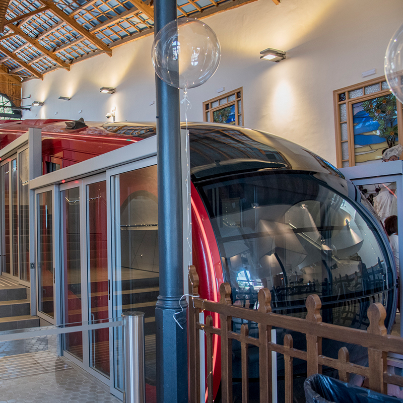 Caratterizzata da un sistema di illuminazione esterna futuristico che ne garantisce la visibilità anche nelle ore buie, la nuova funicolare è all’insegna di tecnologia e innovazione anche per quanto riguarda i sistemi di entertainment: i vagoni sono dotati di tablet con informazioni pratiche sul parco e sulla sua creazione e notizie specifiche sulla storia della funicolare.