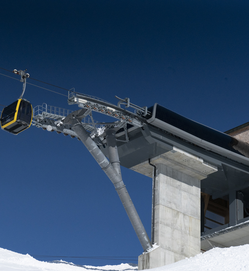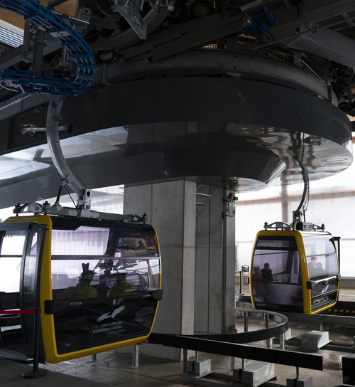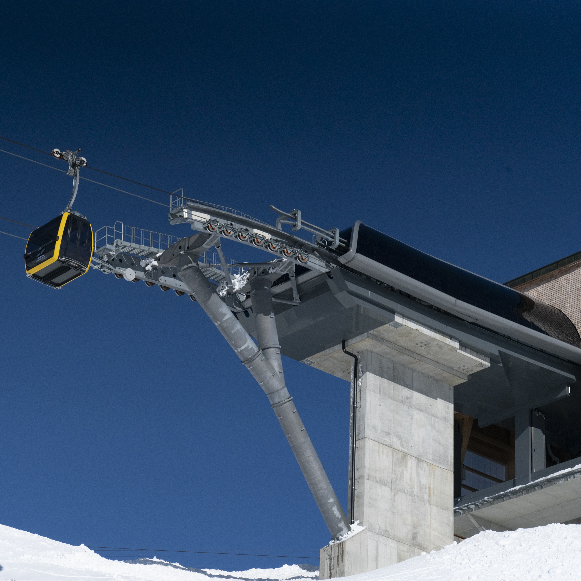 Sul Nebelhorn, dove attualmente si trova la funivia più alta dell’Algovia, la più recente tecnologia bifune di LEITNER compie un debutto tecnologico. È la prima volta che la tecnologia completamente rinnovata viene combinata con le cabine Symphony 10. Il progetto introduce una tecnologia di trasporto moderna e unica nel suo genere, insieme a capacità nettamente superiori, Oltre al notevole miglioramento in termini di comfort, in futuro si eviteranno lunghi tempi di attesa (capacità di trasporto max. 1200 p/h). Le cabine Symphony firmate da Pininfarina faranno sentire coccolati gli ospiti sin dal momento dell’imbarco e durante il tragitto a 1927 metri di quota offriranno loro una vista spettacolare dalla vetrata panoramica. Grazie al caldo rivestimento in Loden sui sedili si è potuto rinunciare a un sistema di riscaldamento delle sedute. La Nebelhornbahn è il primo impianto bifune dotato del DirectDrive di LEITNER (1x stazione intermedia e 1x stazione a monte). La stazione intermedia e quella a monte sono state abbellite dalla copertura premium disegnata da Pininfarina.