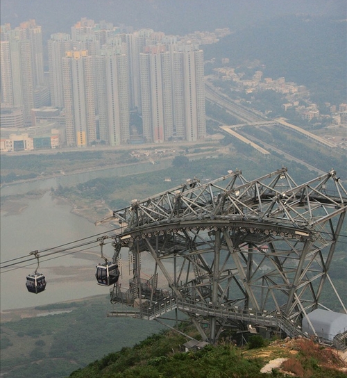 Per ammirare la statua di Buddha a Ngong Ping le persone dovevano viaggiare per ore. Ora in venti minuti i passeggeri possono percorrere una distanza di 5.784 metri per 420 metri di dislivello a una velocità di crociera di sette metri al secondo. La funivia collega il sobborgo di Tung Chung, vicino l'aeroporto internazionale di Hong Kong, con la famosa zona turistica mondiale di Ngong Ping. Il terminal superiore si trova vicino al tempio che ospita una delle statue di Buddha più grandi, nel suo genere, di tutta l'Asia. Dopo soli sei mesi il milionesimo passeggero viaggiava sulla funivia. Nel 2015, il giro in questa cabinovia, è stato inserito tra le 10 più emozionanti corse in funivia al mondo.
