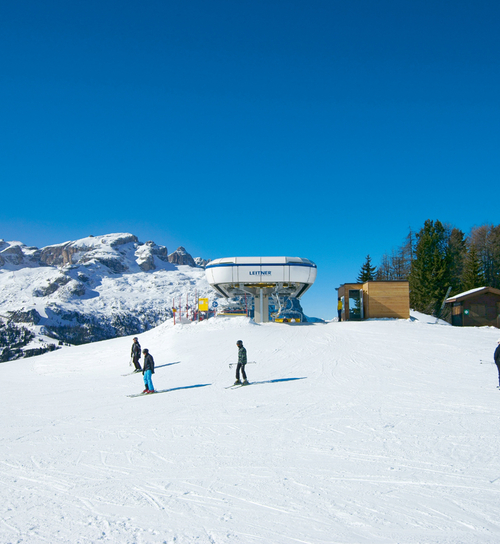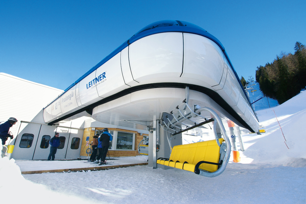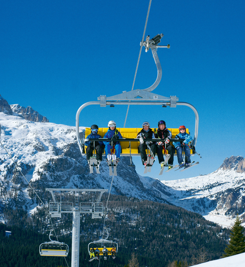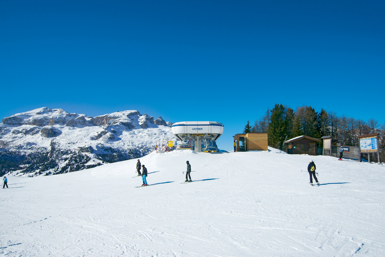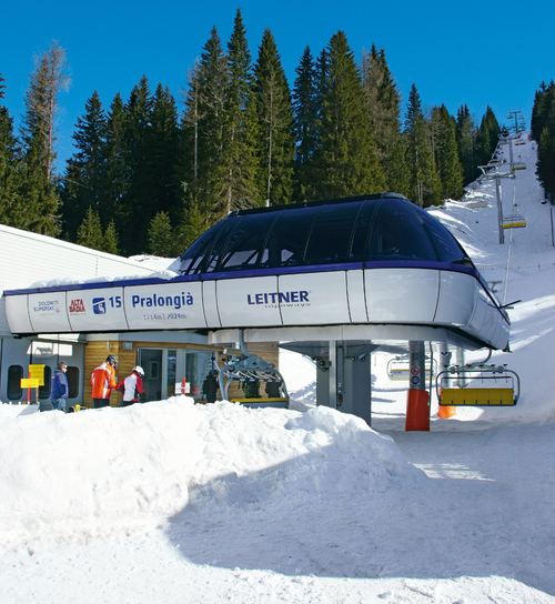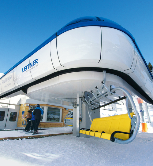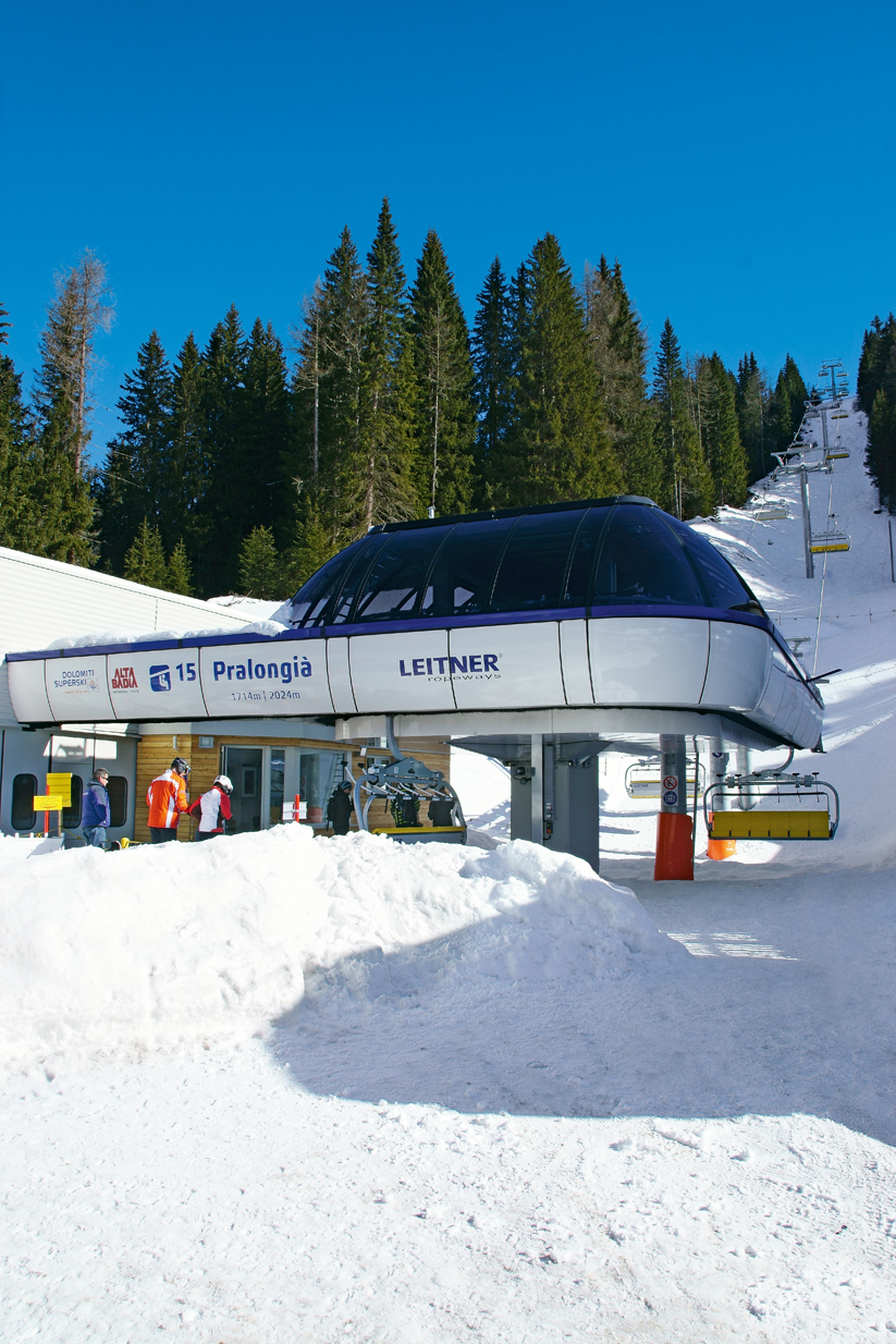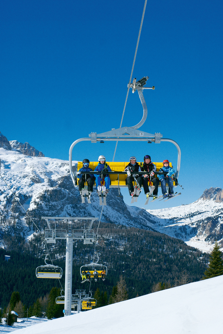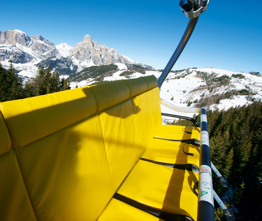 Grazie ai suoi comodi sedili gialli e a un poggiasci individuale per ogni passeggero, andare dal Passo Campolongo al meraviglioso rifugio alpino, ubicato a ben 2.200 metri di altitudine, ora è molto più piacevole.
