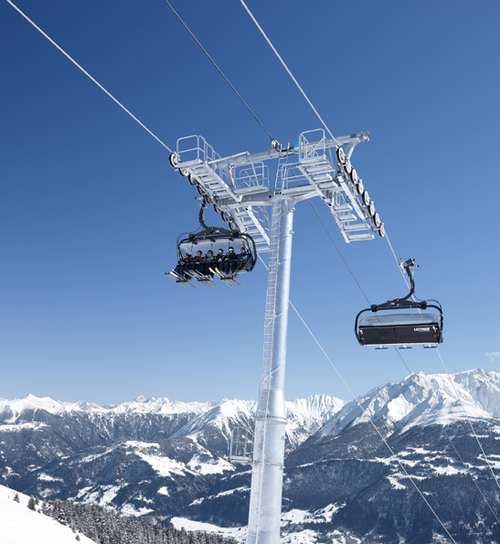 Questa seggiovia di LEITNER ropeways a LAAX dimostra in modo sorprendente che gli impianti moderni possono essere economici e sostenibili, garantendo al tempo stesso comfort e prestazioni elevate. Con il motore ad azionamento diretto di LEITNER ropeways, gli impianti solari, la corrente priva di CO2 e il legno della regione, la Weisse Arena Bergbahn AG punta su una soluzione completa e sostenibile.