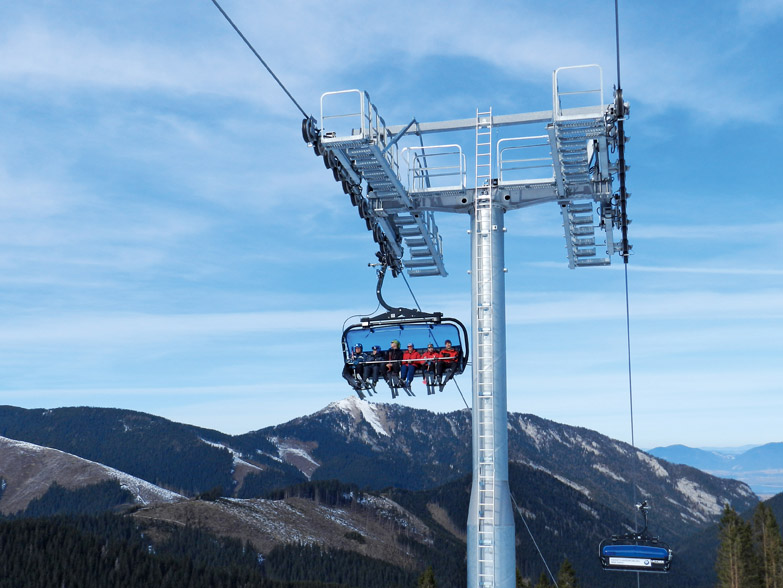 Venti bellissime piste, per un totale di 45 chilometri a un’altitudine compresa tra i 1000 e i 2.024 metri, fanno di Jasna, Demänovska Valley, nei Bassi Tatra, la regina tra i comprensori sciistici della Slovacchia. La seggiovia a 6 posti dispone di molte innovazioni tecnologiche, tra cui l'azionamento DirectDrive, che consente di risparmiare energia e necessita di pochi interventi di manutenzione. Completano l'allestimento i sedili riscaldati, il sistema CPS (Cable Position Supervision) per il monitoraggio della fune e un sistema di immagazzinamento completamente automatico. Particolarmente apprezzate anche le cupole delle seggiole, di colore blu, che fanno spuntare un bel cielo sereno con tutte le condizioni meteorologiche.