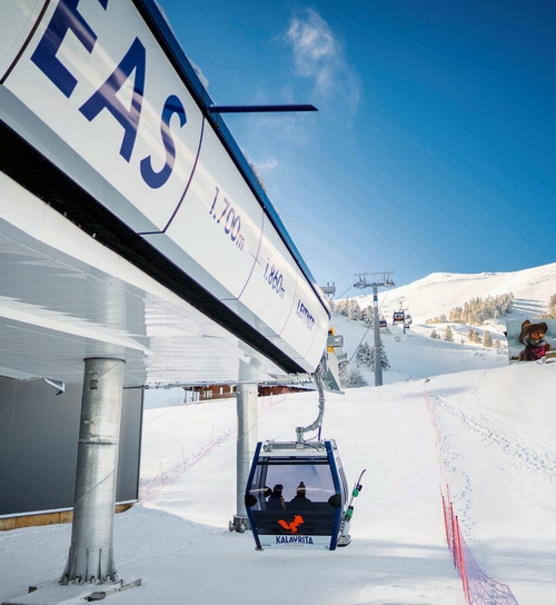 Nella parte occidentale della penisola ellenica si è investito in una moderna cabinovia a 10 posti di LEITNER. La GD10 “Achilleas” completa l’offerta del Kalavrita Ski Resort, che dispone di 25 chilometri di piste. Il nuovo impianto, azionato con il LEITNER DirectDrive per uno sfruttamento responsabile delle risorse, sarà in grado di trasportare fino a 2.000 passeggeri all’ora a una velocità di 5 m/s. I lavori di ammodernamento del comprensorio sciistico proseguiranno l’anno prossimo con la costruzione della seggiovia a 6 posti “Styga”.