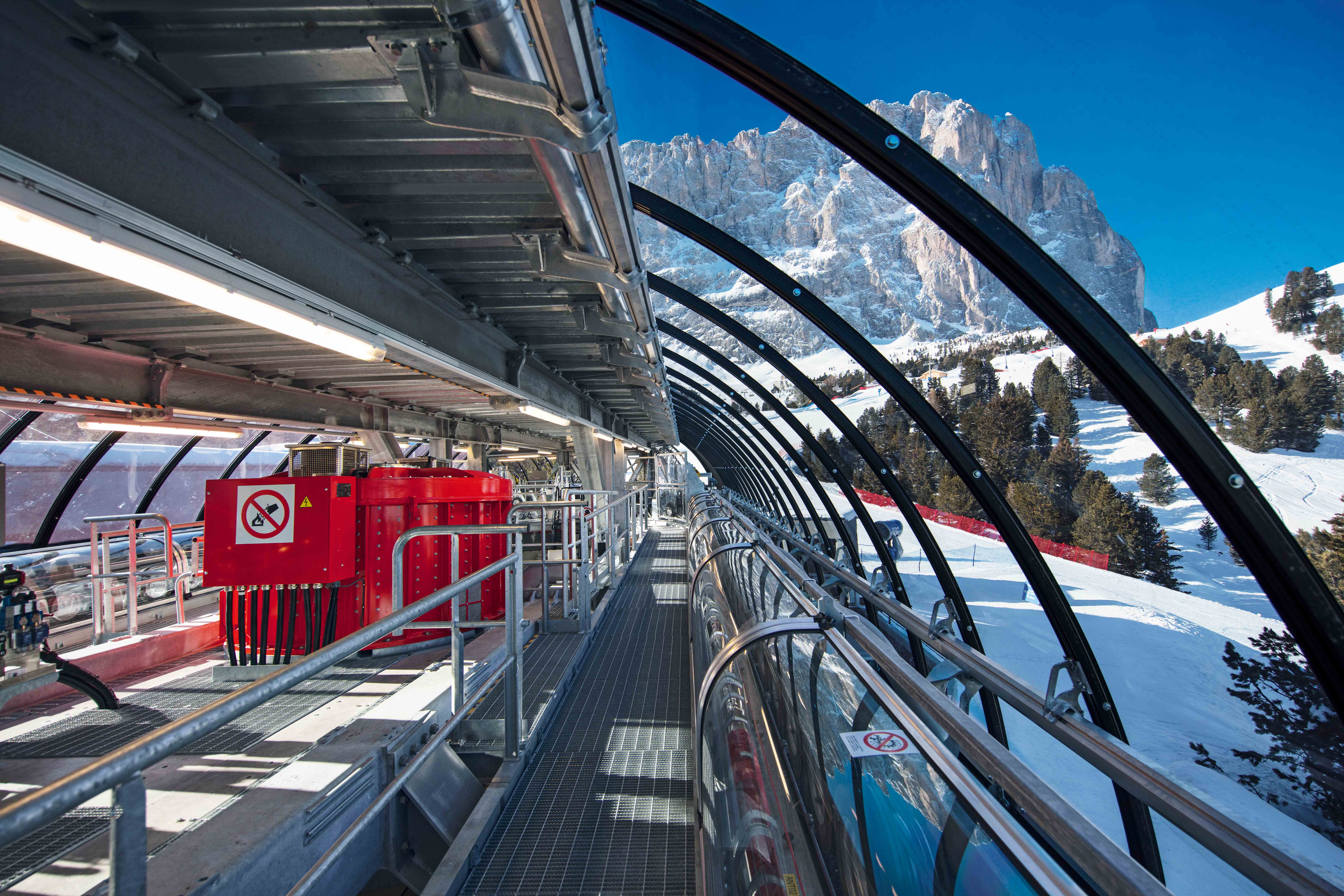 LEITNER ropeways ha realizzato ai piedi del Sassolungo una delle più grandi attrazioni della stagione invernale 2017/2018: la nuova cabinovia “Piz Seteur” in due sezioni, che definisce nuovi standard in termini di comfort, sicurezza e portata. La cabinovia, dall’inconfondibile design italiano firmato Pininfarina, è dotata delle nuove cabine Symphony 10, alla loro prima mondiale in Val Gardena, che offrono molto più spazio interno ai passeggeri e piani di imbarco ampliati. Novità tecnica del nuovissimo impianto è il passaggio in stazione rallentato a 65 secondi con sei cabine aperte, in modo che ci sia più tempo per salire e scendere in sicurezza e senza stress. Pininfarina ha firmato anche la stazione intermedia della nuova cabinovia, perfetto connubio tra design all’avanguardia e accorgimenti progettuali, che apporterà una serie di evidenti vantaggi, tra cui un maggiore comfort per i passeggeri.
