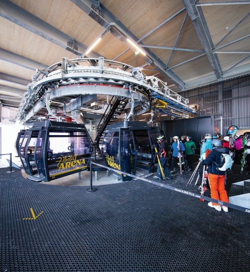 Nel comprensorio sciistico Zillertal Arena, destinato alle famiglie, i gestori hanno investito in un impianto confortevole e moderno di LEITNER. La cabinovia a 10 posti “Wilde Krimml” offre un collegamento diretto tra Zell e Gerlos e, rispetto alla seggiovia precedente, non necessita di una stazione intermedia. Dotato di LEITNER DirectDrive e cabine Diamond EVO con riscaldamento sedili, l’impianto offre uno spazio generoso e comfort esclusivo ai 2.400 passeggeri che ogni ora possono viaggiare tra la Krimmalm e l’Übergangsjoch. Highlight della struttura è la funzione spaziale integrata, che ne aumenta la disponibilità a un livello così alto da rendere superfluo un impianto di evacuazione separato. La progettazione non si distingue solo per la tecnologia funiviaria all’avanguardia, ma ha anche dato vita a un interessante sodalizio con lo studio di architettura di fama internazionale Snøhetta.