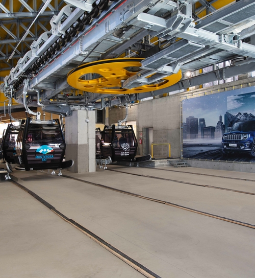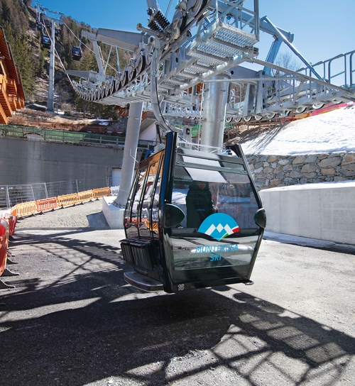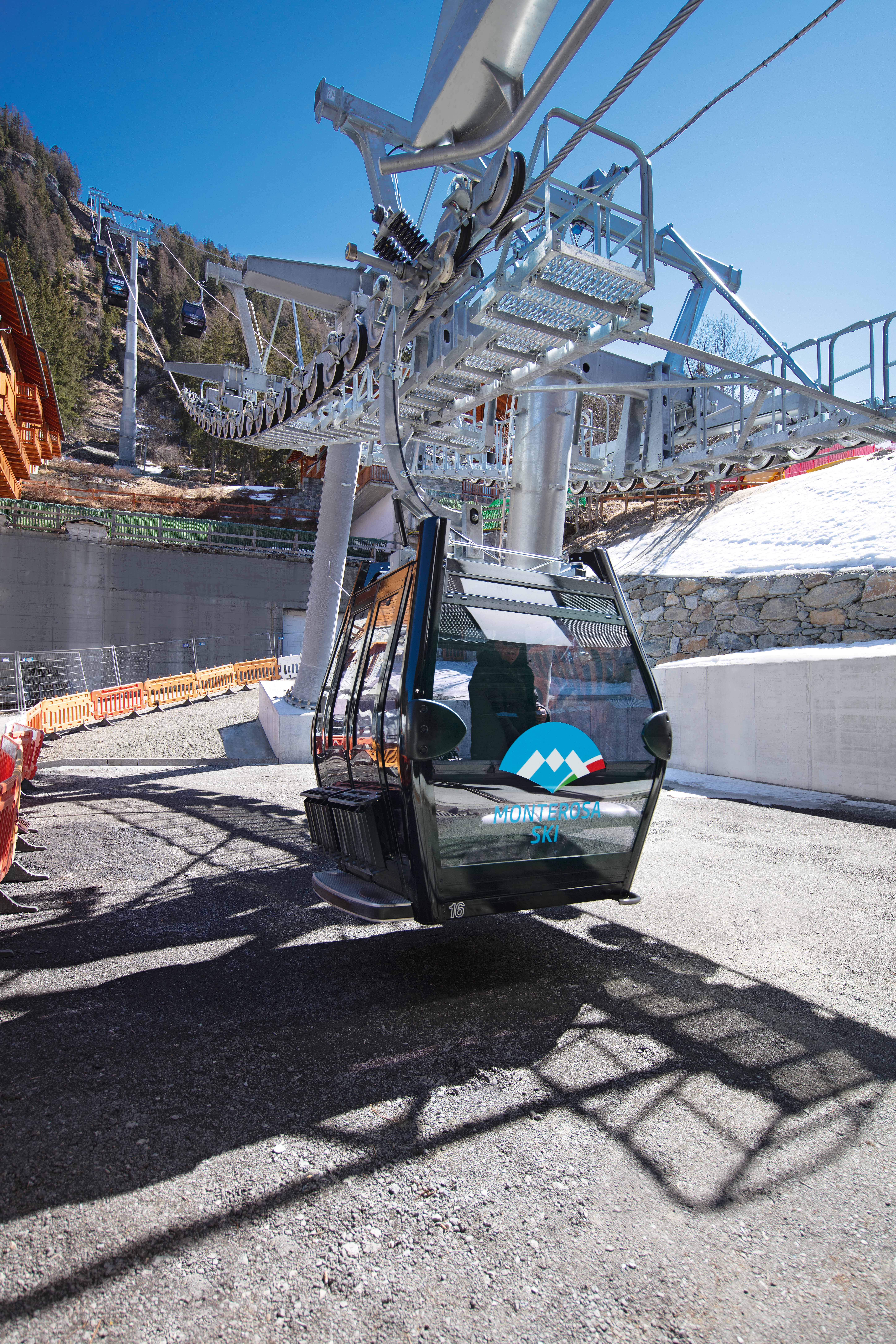 La nuova cabinovia 8 posti realizzata a Cham­poluc, in Val d’Aosta, funge non solo da im­pianto di risalita per gli appassionati di sci (per­mette di raggiungere Crest, rinomato punto di partenza per il comprensorio Monterosa Ski), ma anche da mezzo di trasporto pubblico lo­cale: aperta dalle 7.30 alle 23.00, rappresenta infatti un importante collegamento con i villaggi in quota del comune di Ayas.