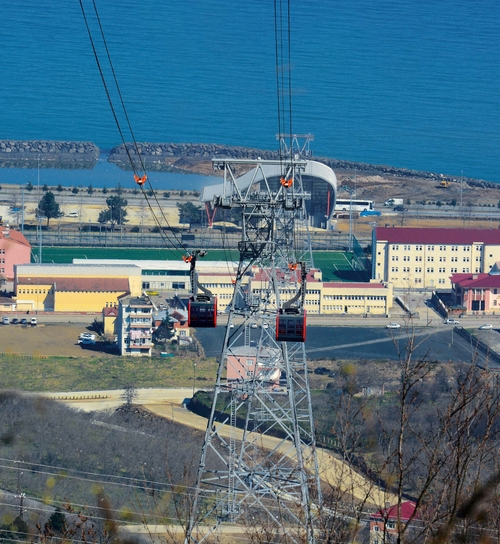 Die neue Pendelbahn von LEITNER ropeways in der türkischen Küstenstadt Beşikdüzü führt direkt vom Meer zum Aussichtsberg Beşikdağ. Die Bahn begeistert nicht nur mit faszinieren­dem Ausblick, sondern auch mit einer Reihe spannender technischer Details. Die zwei Kabinen sind mit jeweils 16 Sitzplätzen und mit LED-Leuchten an der Außenseite des Rahmens sowie am Oberboden im Inneren ausgestattet. Neben modernster Beförde­rungstechnik sind auch die baulichen Beson­derheiten charakteristisch für das Projekt. So führt die Bahn über eine Strecke von drei Kilo­metern und ist somit die längste Seilbahn am Schwarzen Meer. Die Anlage verfügt über vier Stützen, wobei die höchste von ihnen stolze 72 Meter in die Luft ragt.