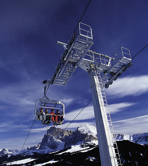4-er Sesselbahn mit Hauben auf der Seiser Alm