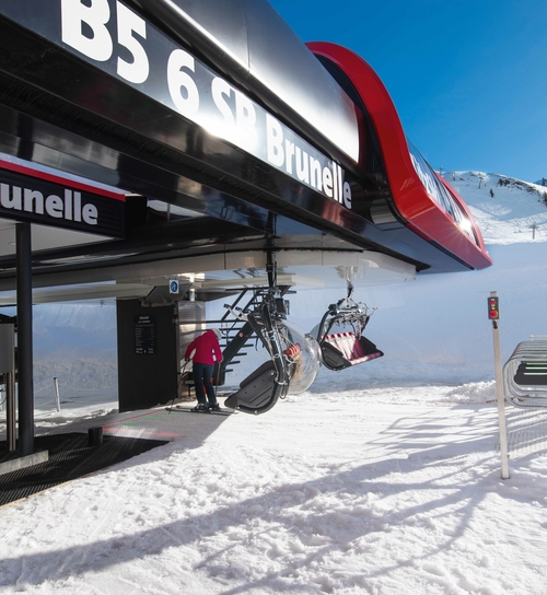 Zu den besonderen Highlights der neuen 6er-Sesselbahn „Brunelle“ zählen die Premium Sessel mit Sitzheizung, Wetterschutzhaube und Echtlederbezug. Zudem ist die Fahrt mit der Bahn auch noch wesentlich schneller: So wurde die Zeit zum Gipfelbereich von über acht Minuten auf vier Minuten halbiert. Die moderne Technologie des LEITNER DirectDrive sorgt nicht nur für Energieersparnis und Wartungseffizienz, sondern gewährleistet auch Geräuscharmut. Ein weiteres Highlight ist beispielsweise die LEITNER Querpendeldämpfung, die im Gehängebereich der Premiumsessel der 6er-Sesselbahn „Brunelle“ die Windanfälligkeit auf ein absolutes Minimum reduziert.