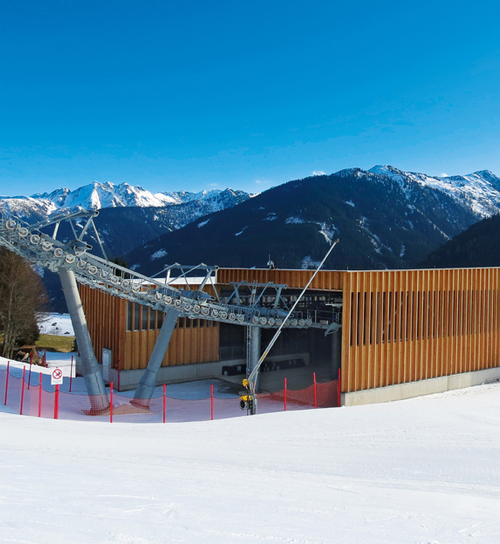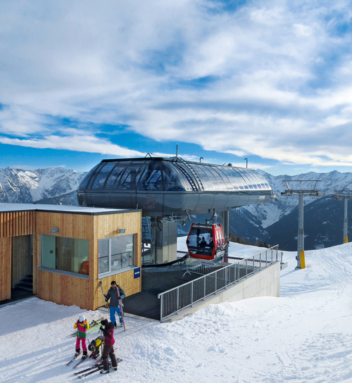Die GD10 Golzentippbahn löst einen alten fixen 2er Sessellift ab. Nun kommen die Gäste in der halben Fahrzeit vom Dorfzentrum zur Bergstation. Die Bahn verfügt über den Antrieb DirectDrive und große Panoramafenster.