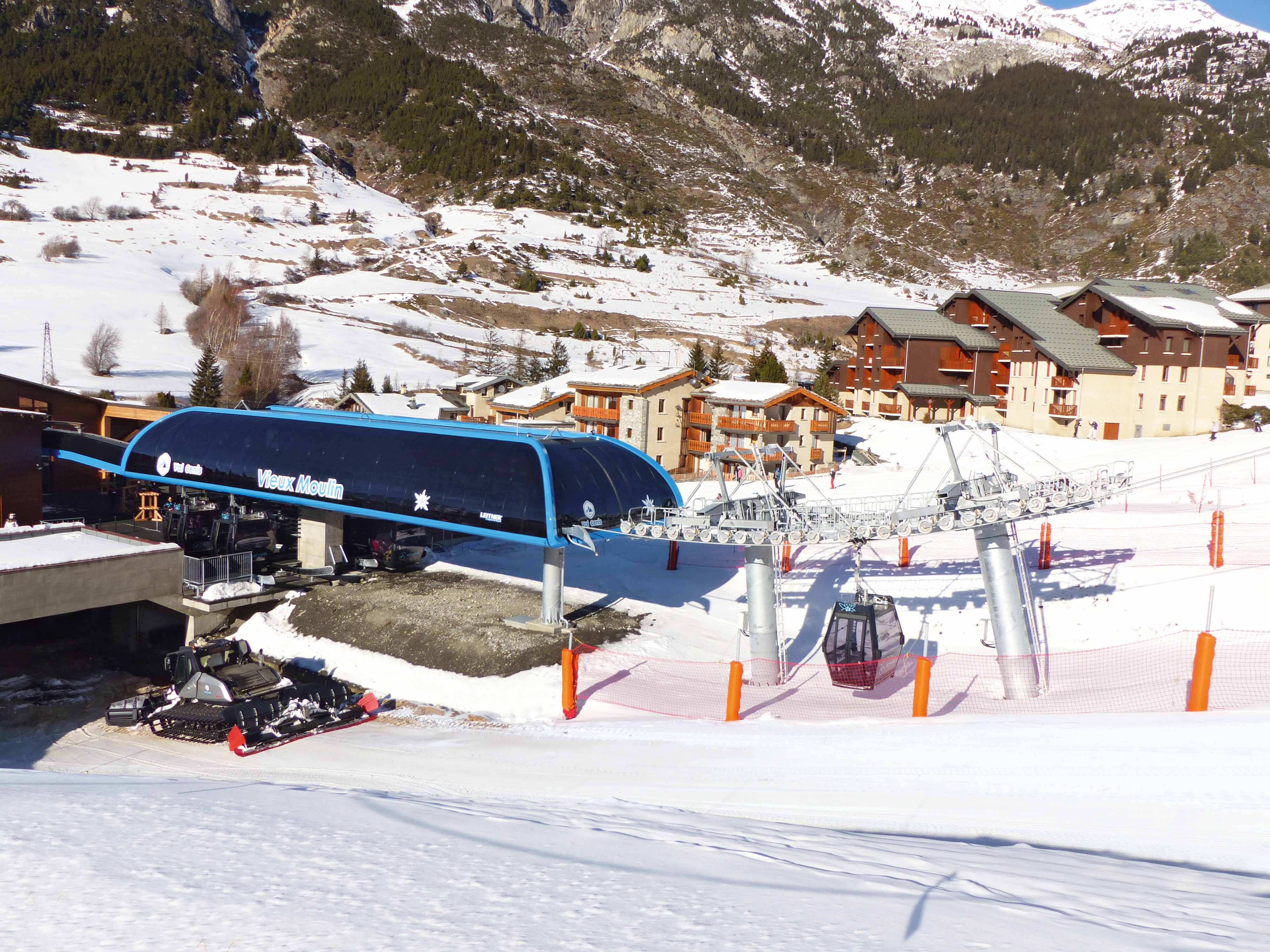 Die moderne 10er-Kabinenbahn „Vieux Moulin“ im französischen Skigebiet Val Cenis Vanoise ersetzt eine 30 Jahre alte 6er-Kabinenbahn und dient als Zubringerbahn zum Skigebiet. Die Bahn ist die erste Anlage in Frankreich mit eleganter Pininfarina Station, außerdem wurde sie mit dem LEITNER DirectDrive und Diamond EVO Kabinen inklusive Sitzheizung ausgestat­tet. Durch die neue Kabinenbahn gelangen die Wintersportler rasch und komfortabel ins Skigebiet. Das Skigebiet Val Cenis Vanoise liegt nahe der italienischen Grenze in den fran­zösischen Alpen.