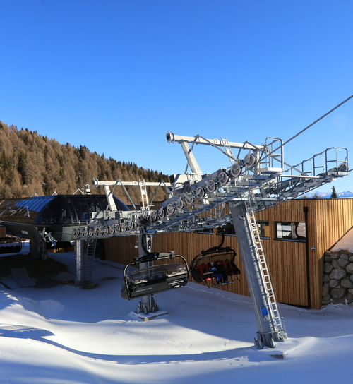 Ein zentrales Modernisierungsprojekt im Skigebiet Gitschberg Jochtal ist die neue 6er- Sesselbahn „Steinermandl“, die eine frühere 4er-Sesselbahn ersetzt. Durch die leistungsstarke Anlage wird die Fahrzeit zum höchsten Punkt auf über 2.100 Metern halbiert, wodurch Wintersportler schneller und komfortabler die Pisten erreichen. Um ein Höchstmaß an Komfort zu bieten, wurde die neue Anlage mit Wetterschutzhauben, Einzelfußrastern, Premiumpolsterung und Sitzheizung ausgestattet. Zudem erhielt sie eine Stationsverkleidung im Pininfarina-Design, die nicht nur funktional, sondern auch optisch beeindruckt. Zugleich sorgt die Anlage für eine technologische Italien-Premiere: Die CD6 „Steinermandl“ ist die erste Sesselbahn des Landes, die mit der LeitPilot-Technologie von LEITNER ausgestattet wurde. Dieses KIgestütztem System dient der automatisierten Überwachung und Steuerung des Ein- und Ausstiegsbereichs und wird derzeit begleitend zur manuellen Stationsbetreuung getestet.